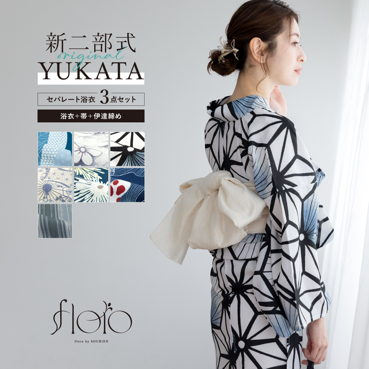 浴衣 レディース セパレート浴衣 二部式浴衣 浴衣セット 大人 F 兵児帯 floro 夏 3点 2way 簡単 花柄 レディース浴衣 女性 ゆかた ユカタ yukata モダン 創美苑