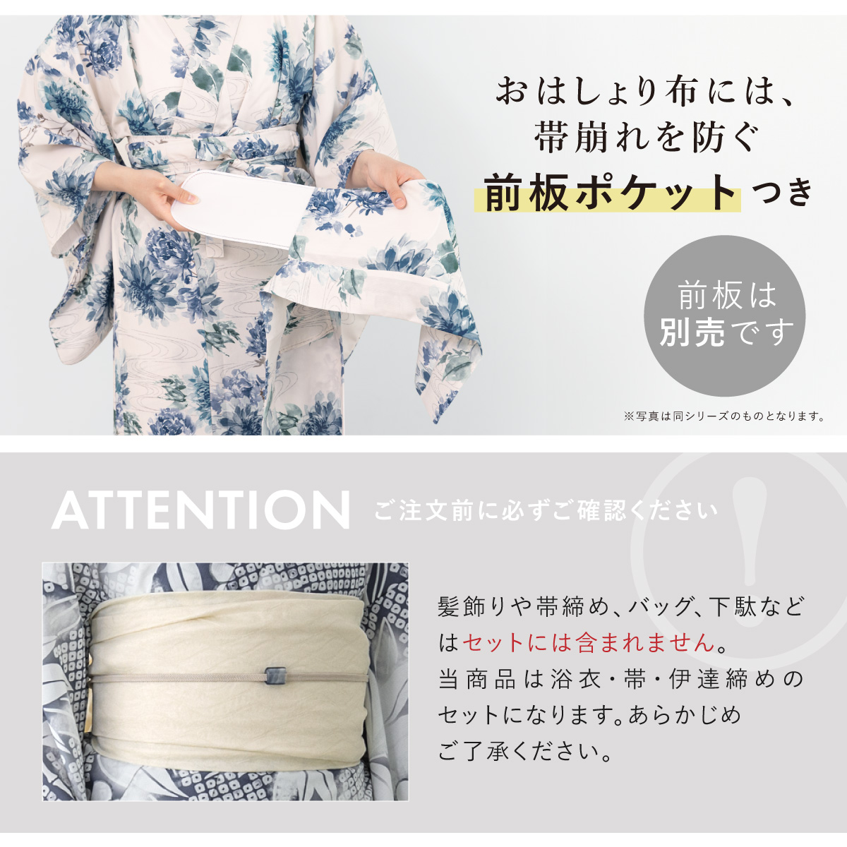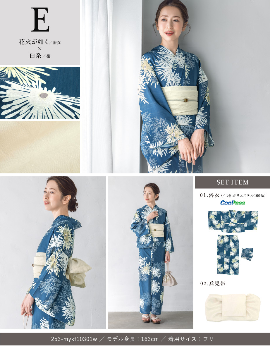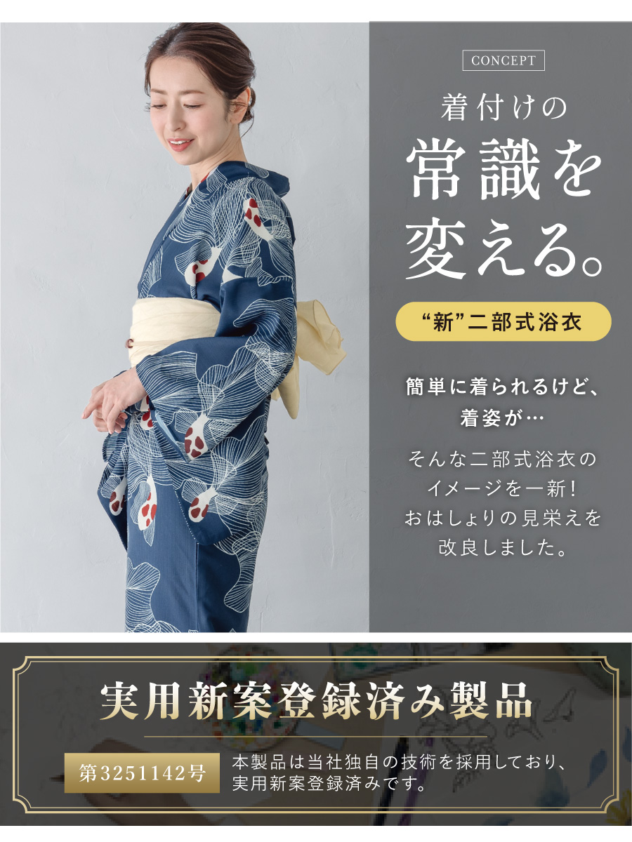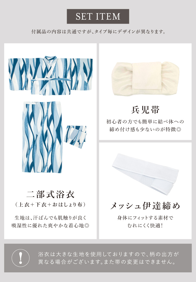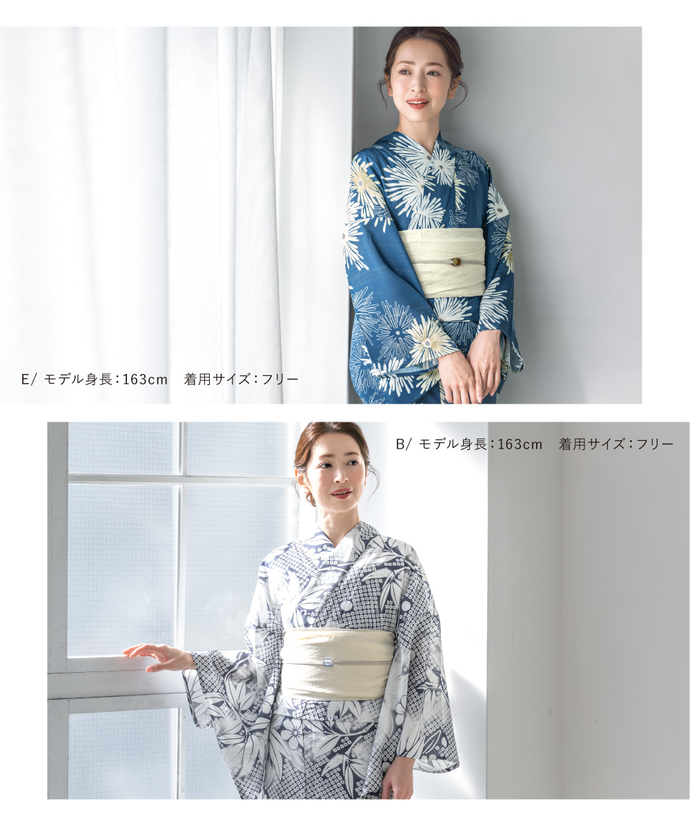 ※製造の都合上、浴衣とおはしょり布の色味が若干異なる場合があります。