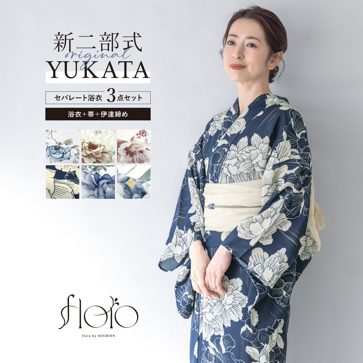 浴衣 レディース セパレート浴衣 二部式浴衣 浴衣セット 大人 F 兵児帯 floro 夏 3点 2way 簡単 花柄 レディース浴衣 女性 ゆかた ユカタ yukata モダン 創美苑