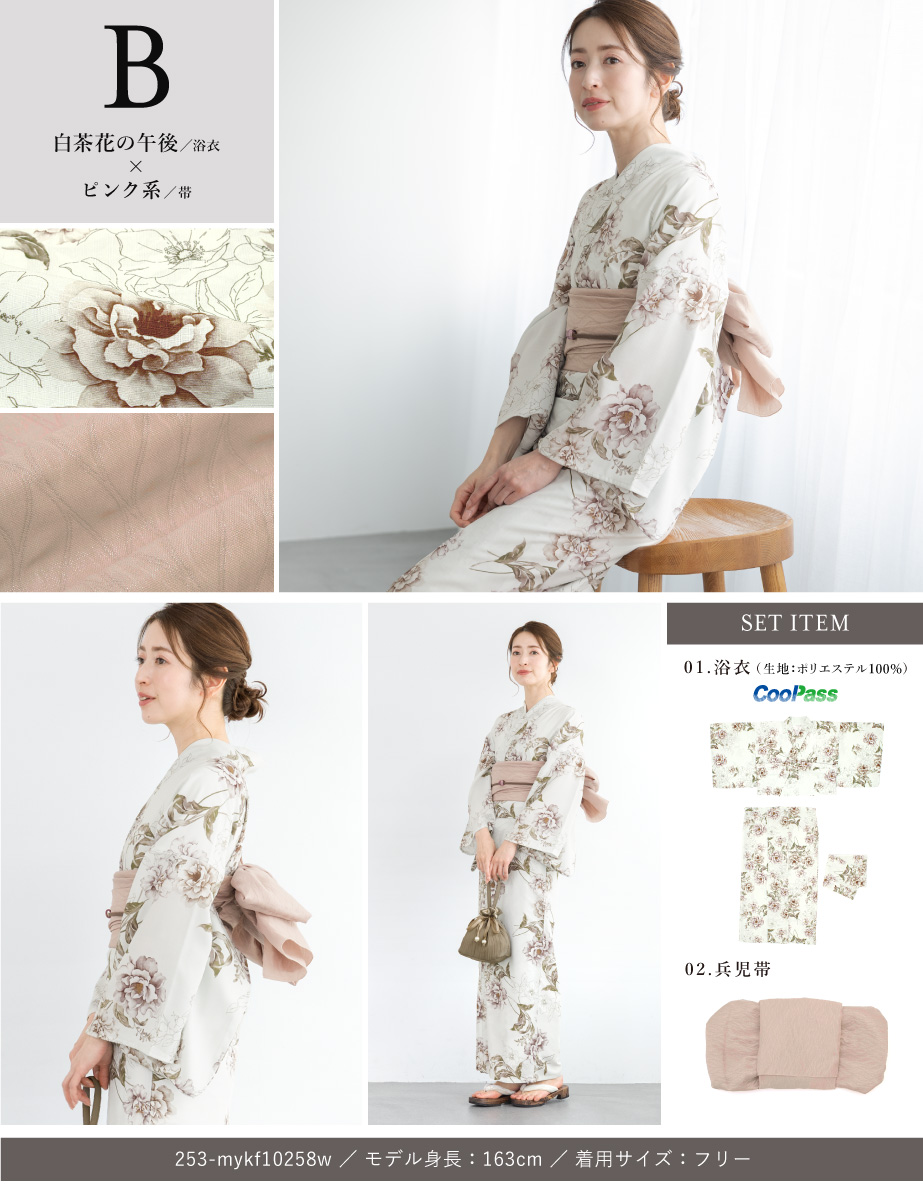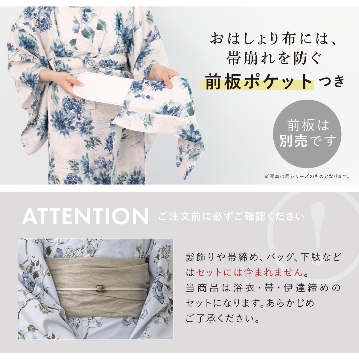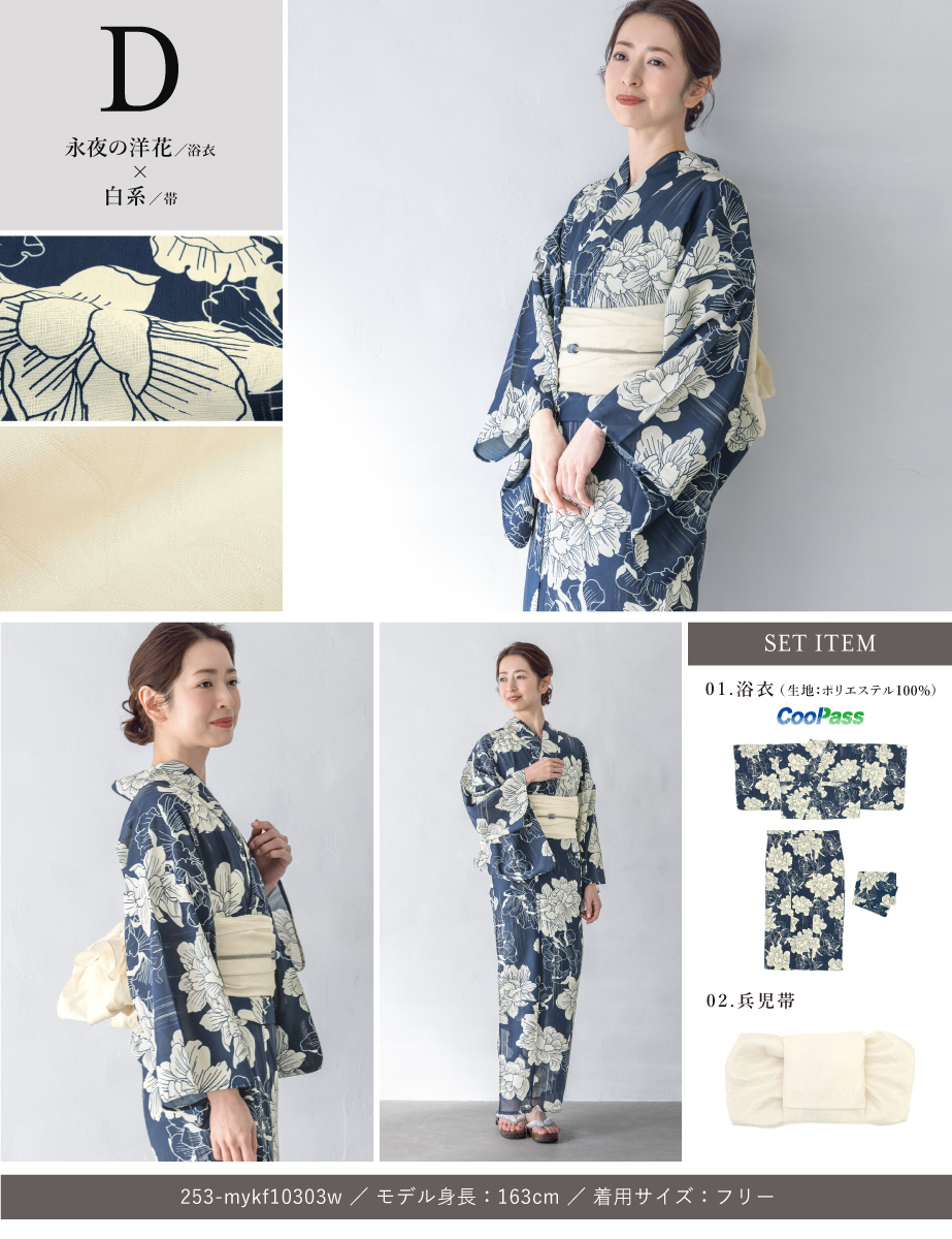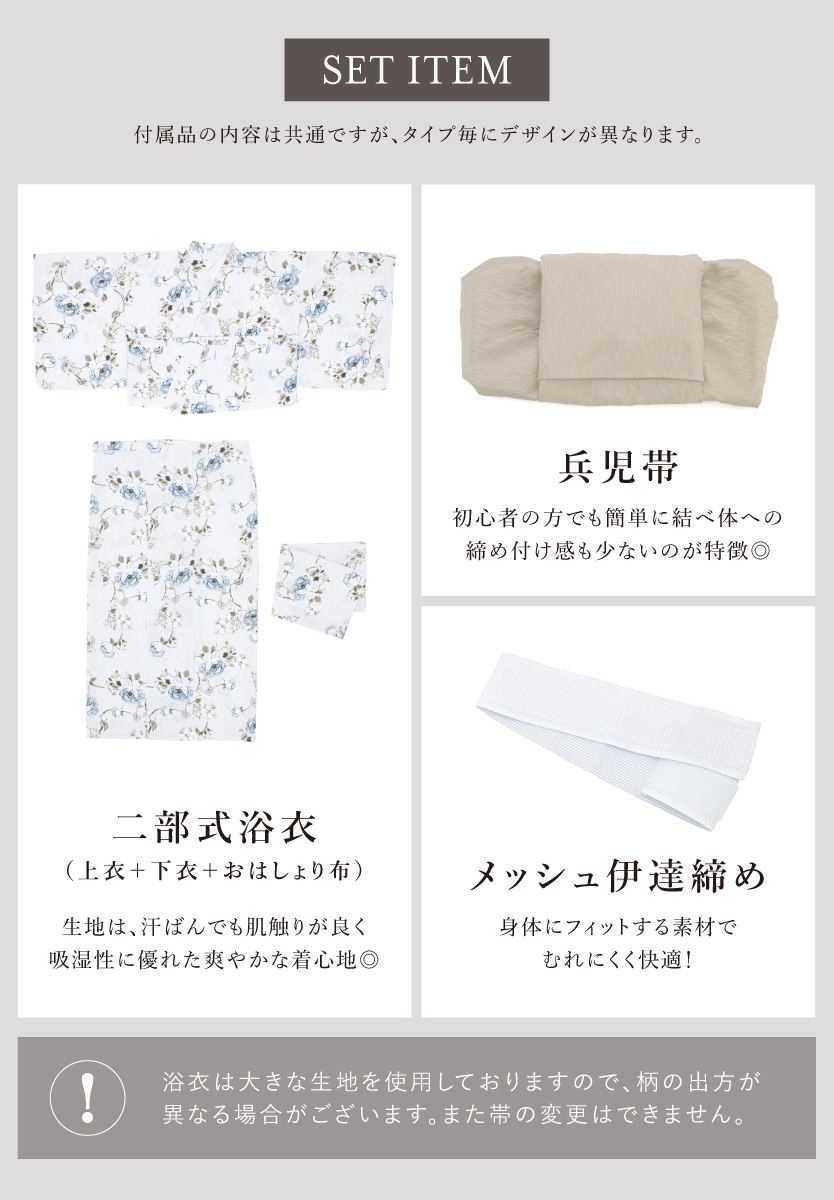 ※製造の都合上、浴衣とおはしょり布の色味が若干異なる場合があります。