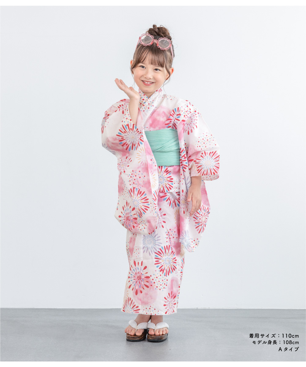 浴衣 子供 女の子 セット キッズ 兵児帯 浴衣セット 2点セット 子ども服 2025新作 くすみ 白 水色 青 赤 紺 橙 ピンク 花火 紫陽花 花柄