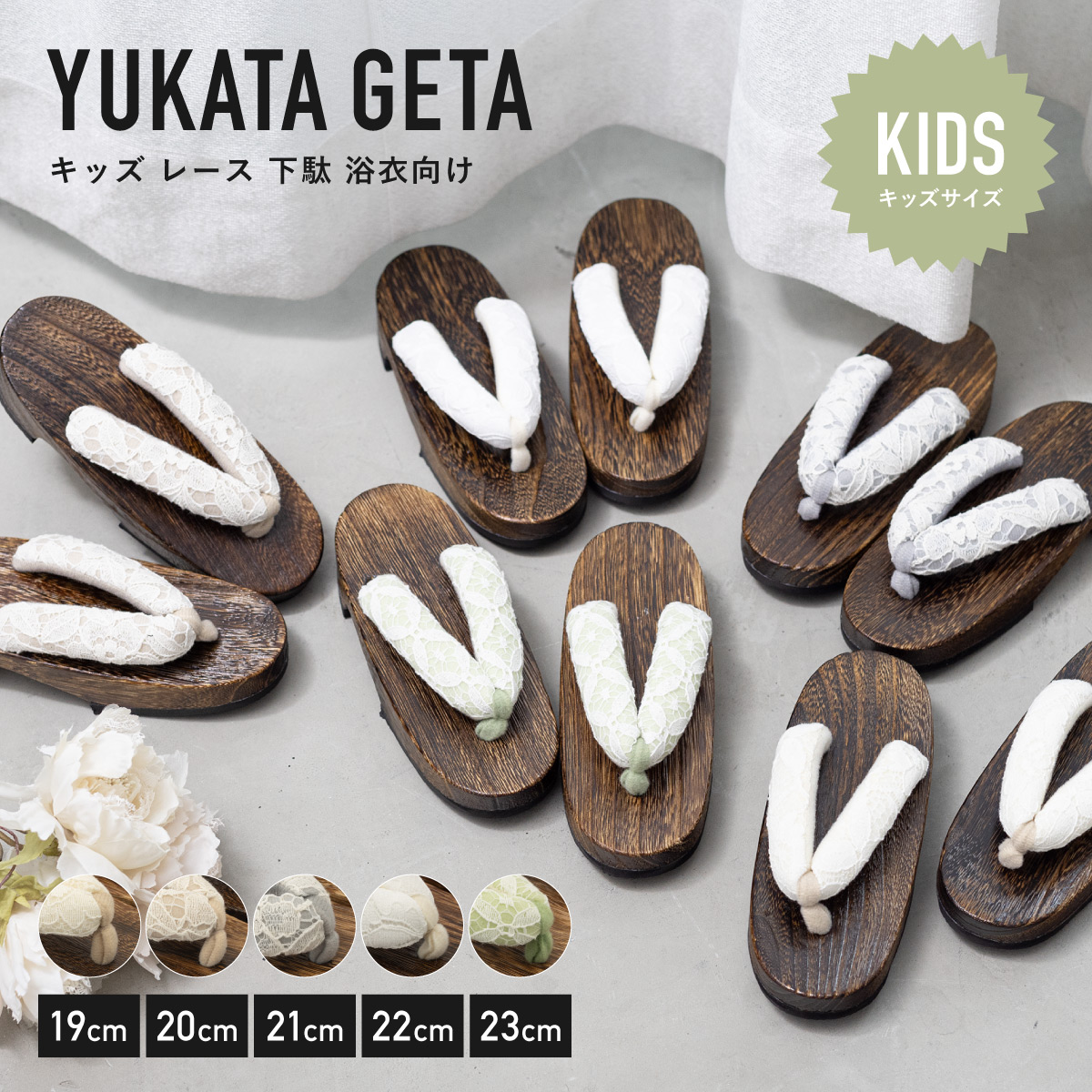 下駄 子供 キッズ レース 浴衣向け 痛くない 履きやすい 黒 桐下駄 右近型 女の子 女児 くすみカラー 小学生 中学生 滑り止め 19 20 21 22 23 S寸 送料無料