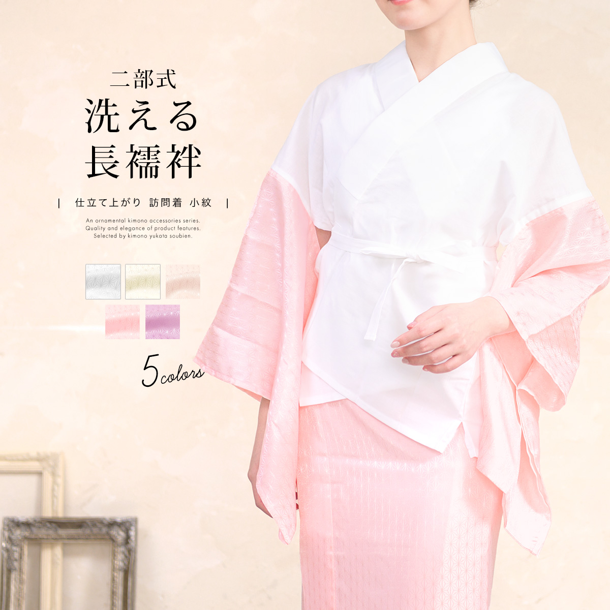 選べる5色!和柄の地模様が美しい半衿付き二部式襦袢
