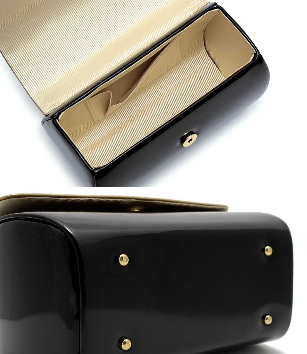成人式 バッグ 単品 創美苑オリジナル 黒 ブラック 金色 ゴールド スタッズ シンプル エナメル ハンドバッグ 振袖 袴 卒業式
