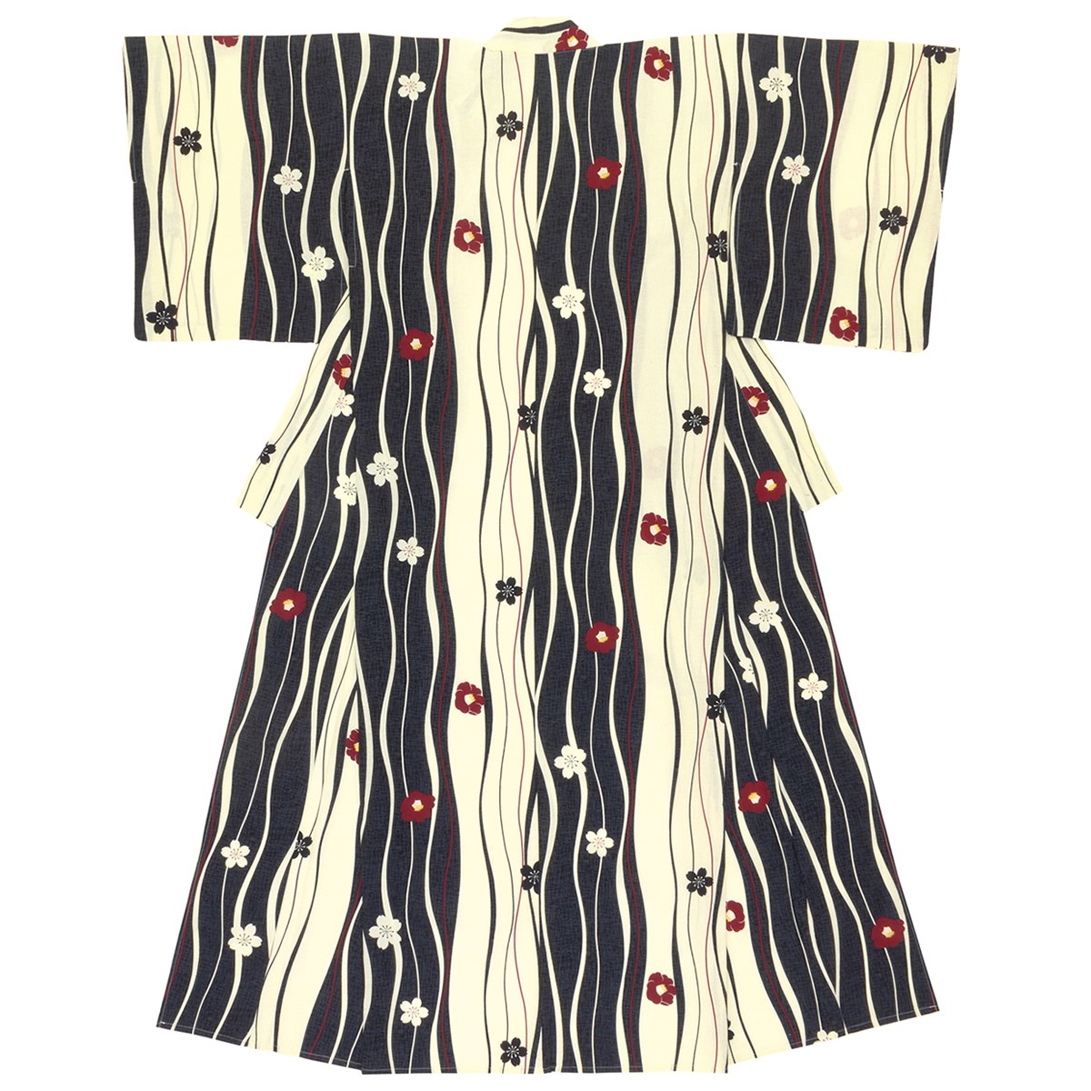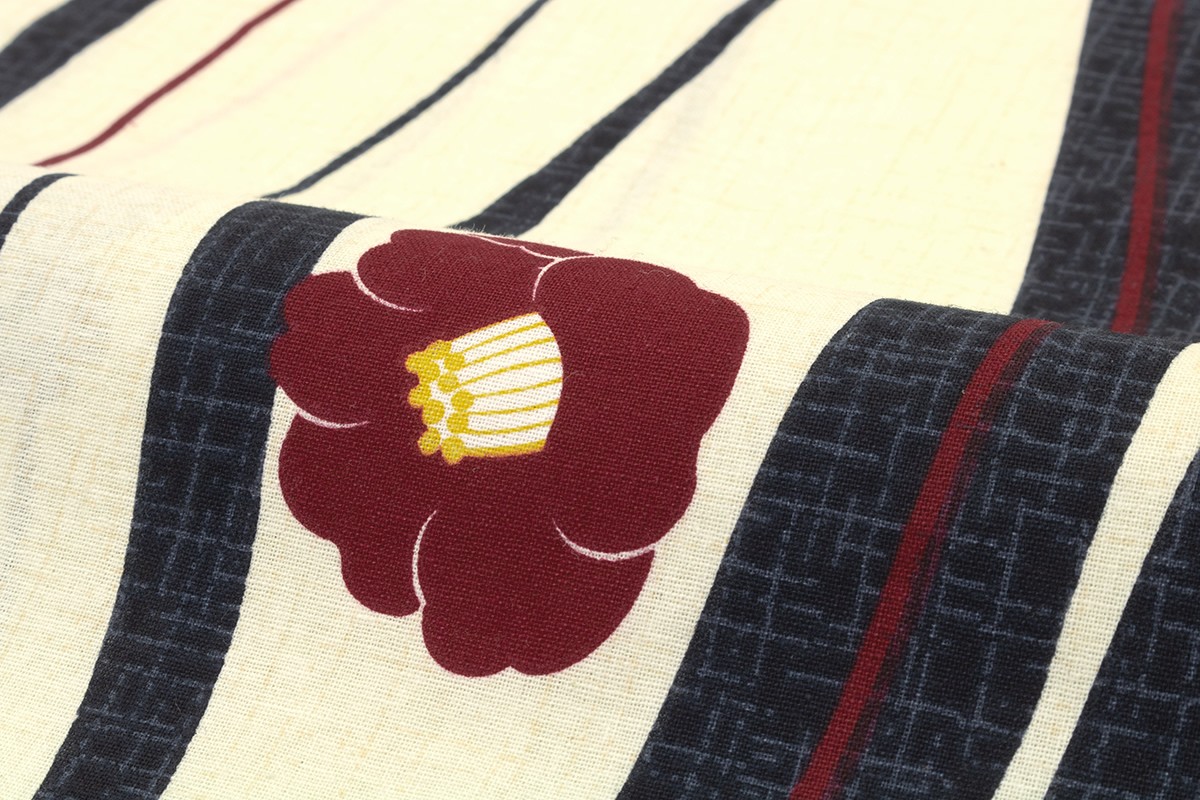 浴衣 レディース 黒系 ブラック クリーム 椿 ツバキ よろけ縞 花 綿 単品 夏祭り 花火大会 女性用 仕立て上がり