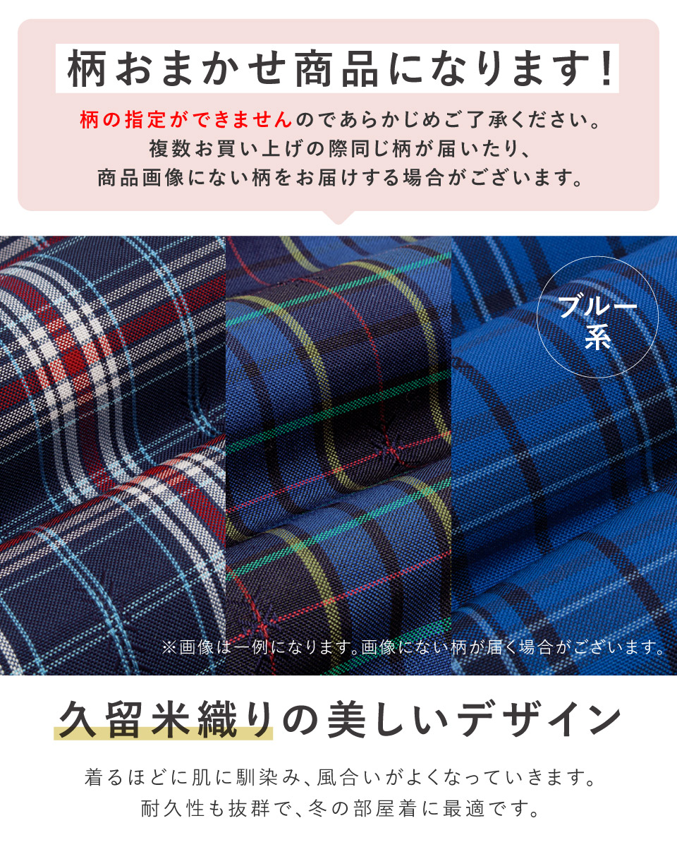 半纏 メンズ はんてん 大判 ロング 綿入り 冬 あったか 男性 柄おまかせ 青 チェック 久留米織 手づくり 先染め 光延織物 ハンテン 日本製 3L