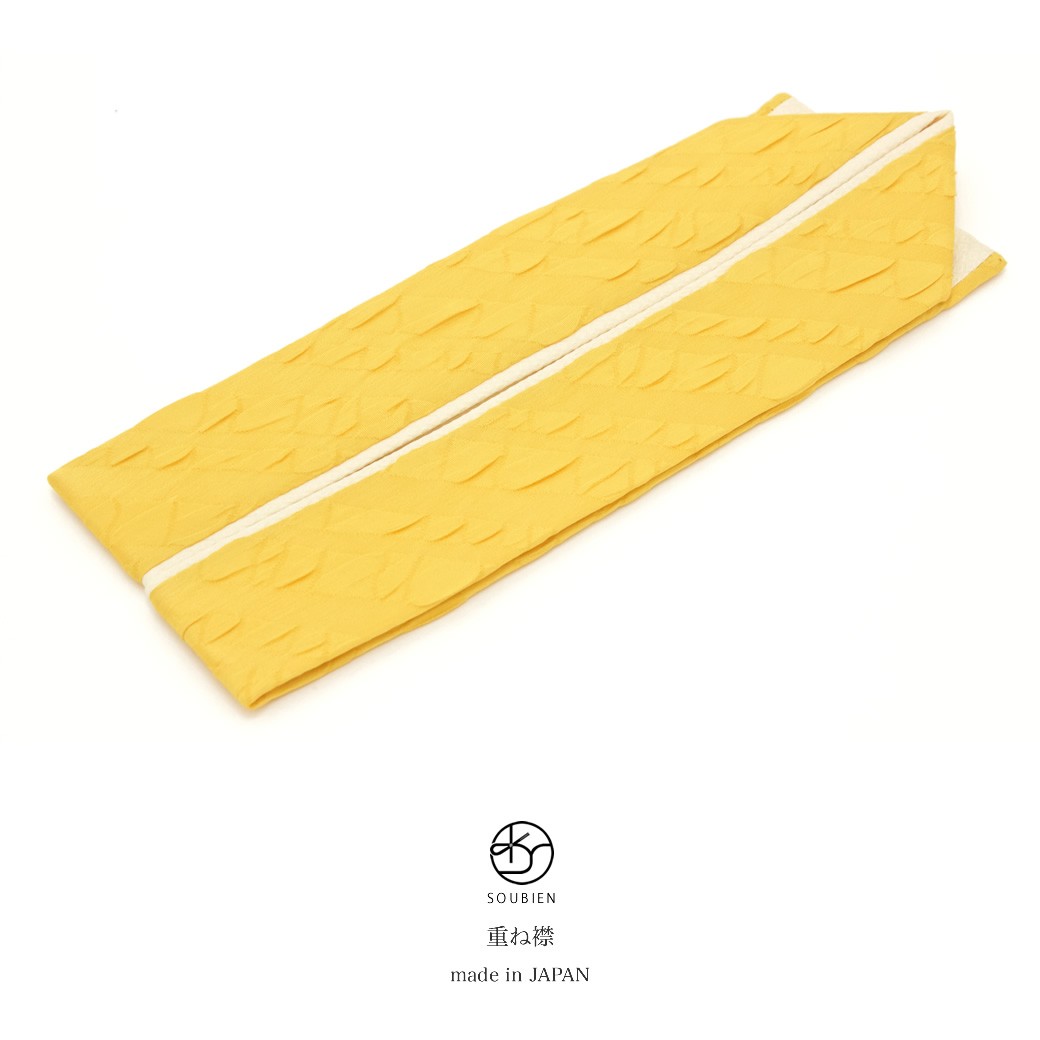 重ね襟 振袖 重ね衿 成人式 伊達襟 伊達衿 黄色 イエロー クリーム ボーダーストライプ 鹿の子 リバーシブル 両面 正絹 伊達衿 日本製 メール便配対応