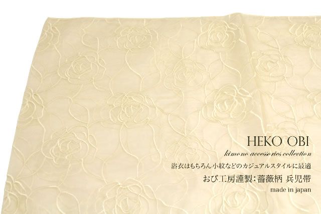兵児帯 ベージュ 薔薇 メッシュ プチヘコ 浴衣帯