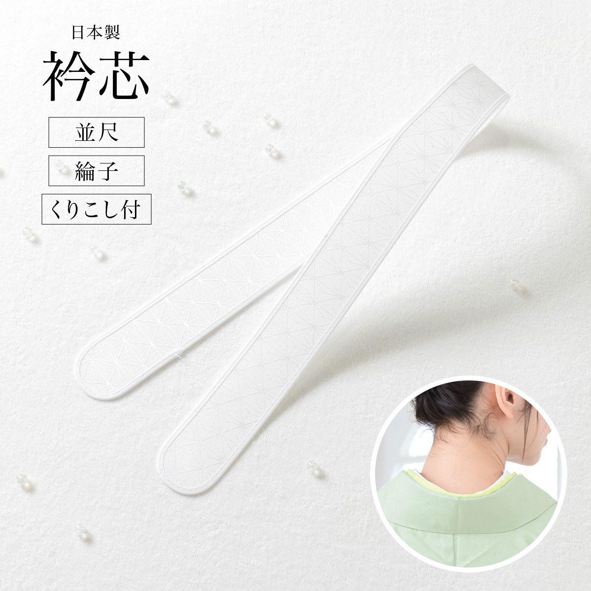 衿芯 並尺 白 オフホワイト 綸子 麻の葉 くりこし型 あづま姿 襟芯 えり芯 エリ芯 着物 着付け小物 和装小物 日本製