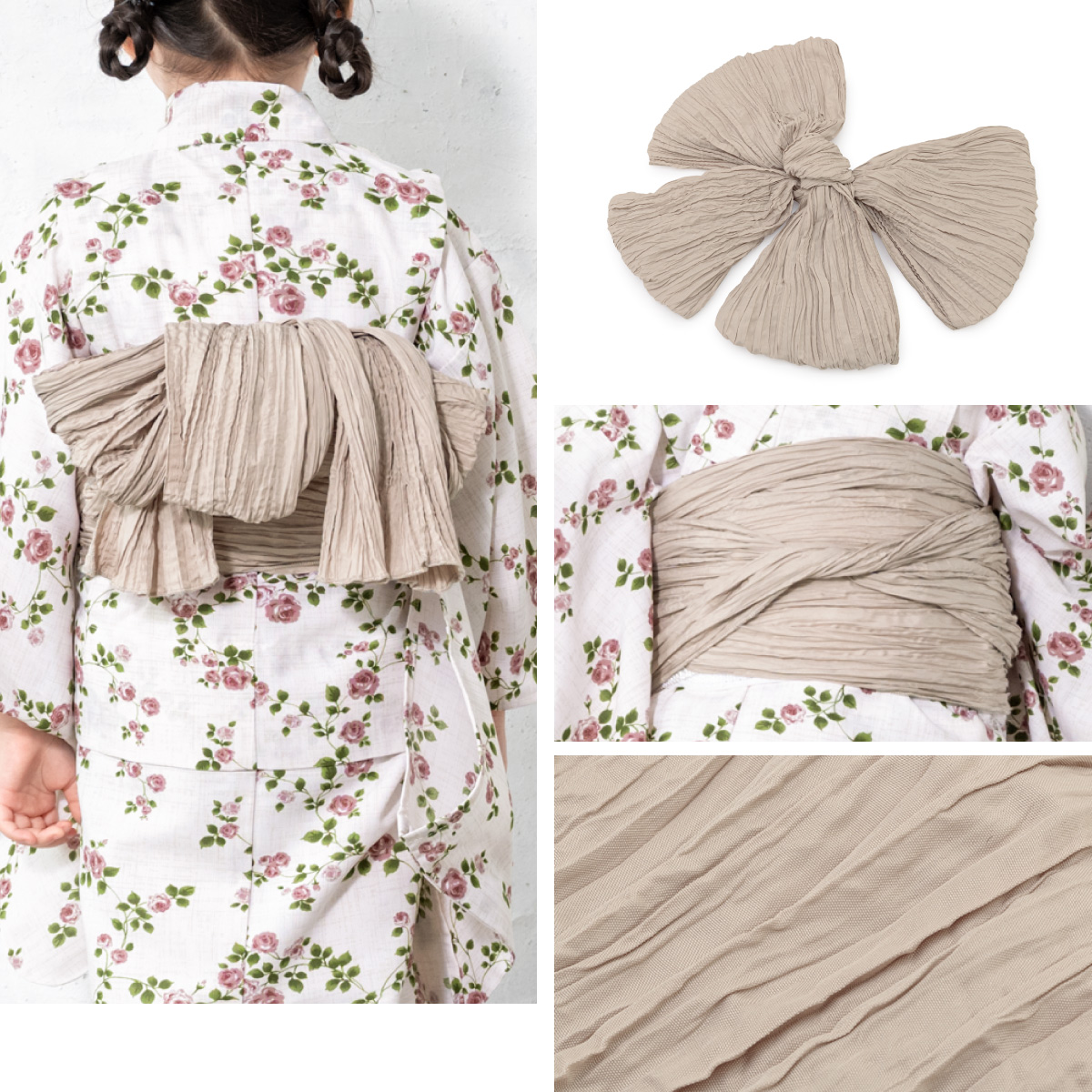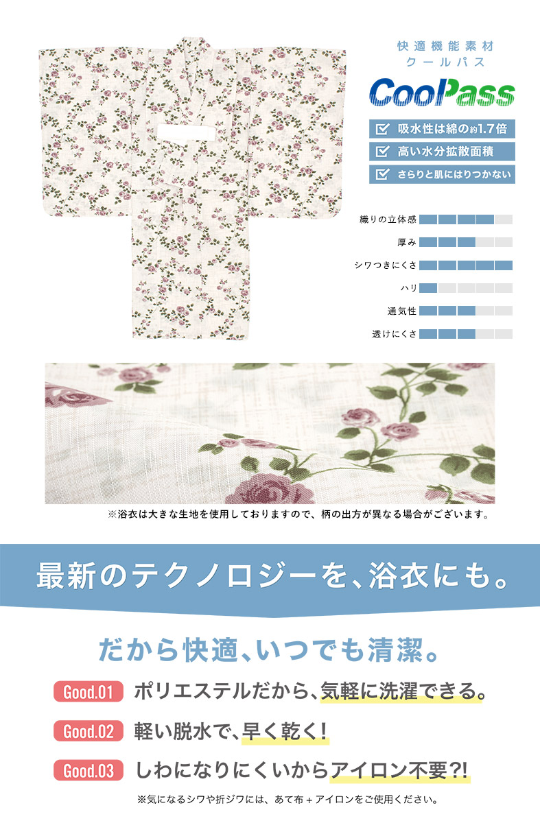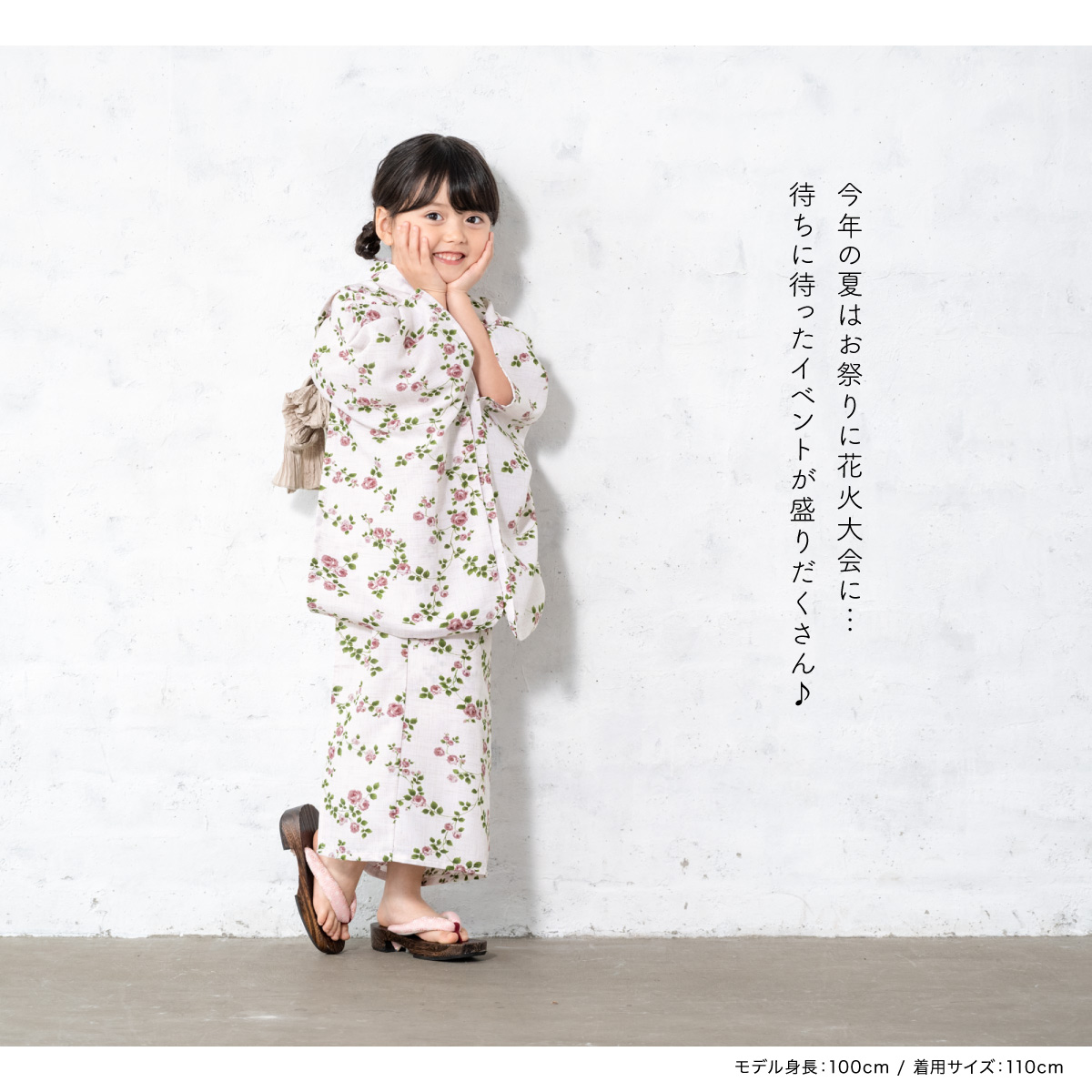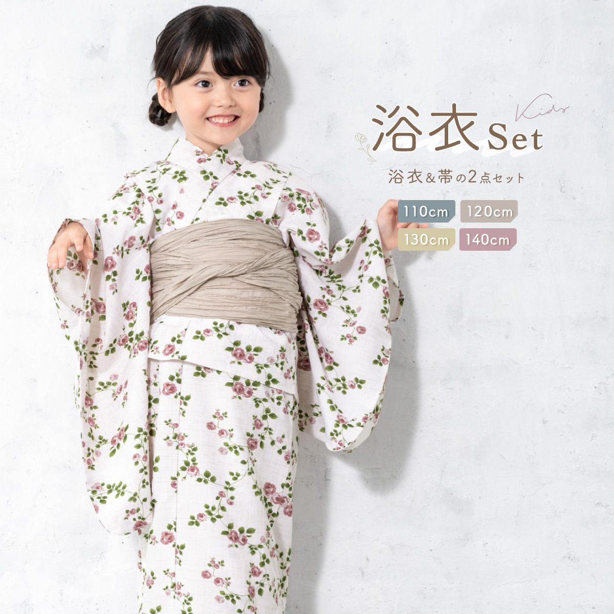 浴衣 子供 女の子 セット SOUBIENオリジナル 吸水速乾 CoolPass 2点セット 女児 アイボリー系 ピンク 薔薇 夏 110 120 130 140 送料無料 2026