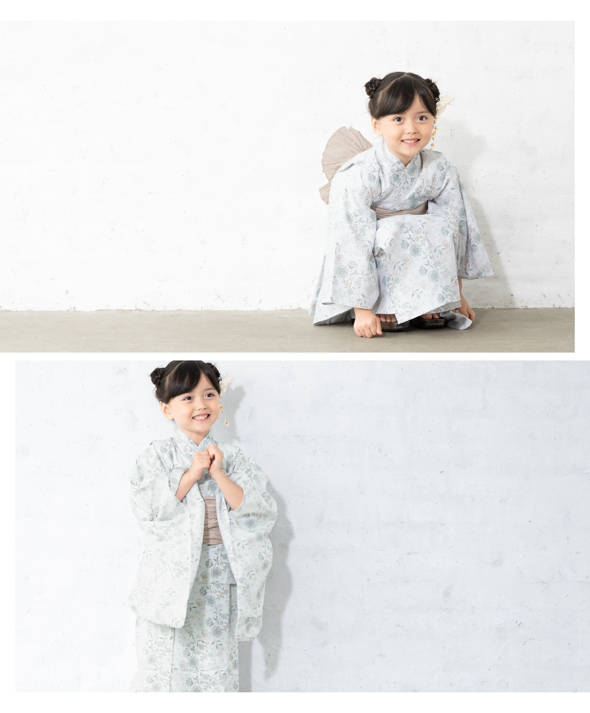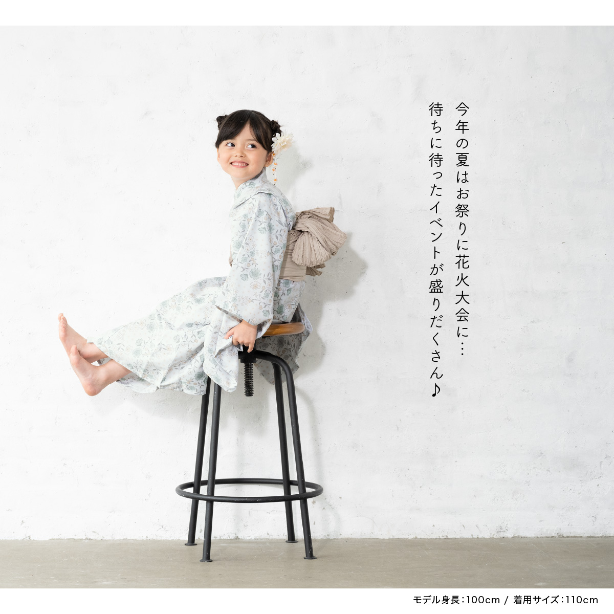 浴衣 子供 女の子 セット SOUBIENオリジナル 吸水速乾 CoolPass 2点セット 女児 グレー 灰色 花唐草 白茶 110 120 130 140 送料無料 2026