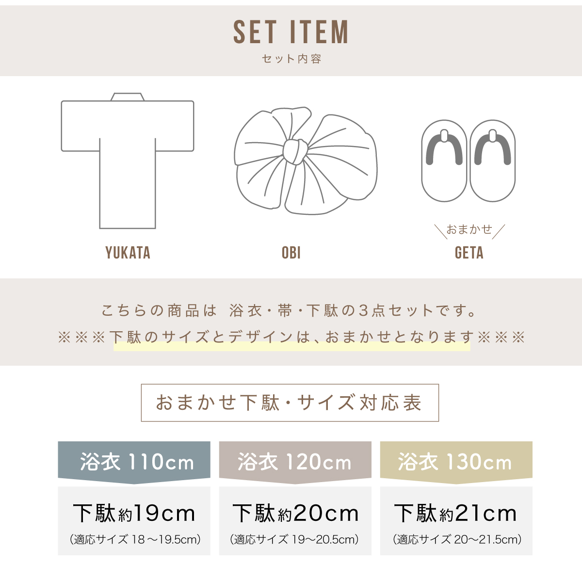 ※浴衣・帯・下駄の3点セットです。セット内容の一部変更や、それに伴う値引きは承っておりません。