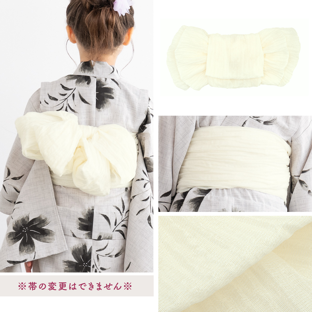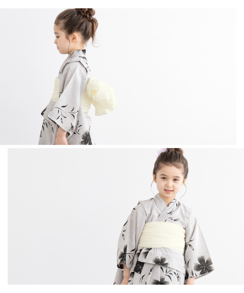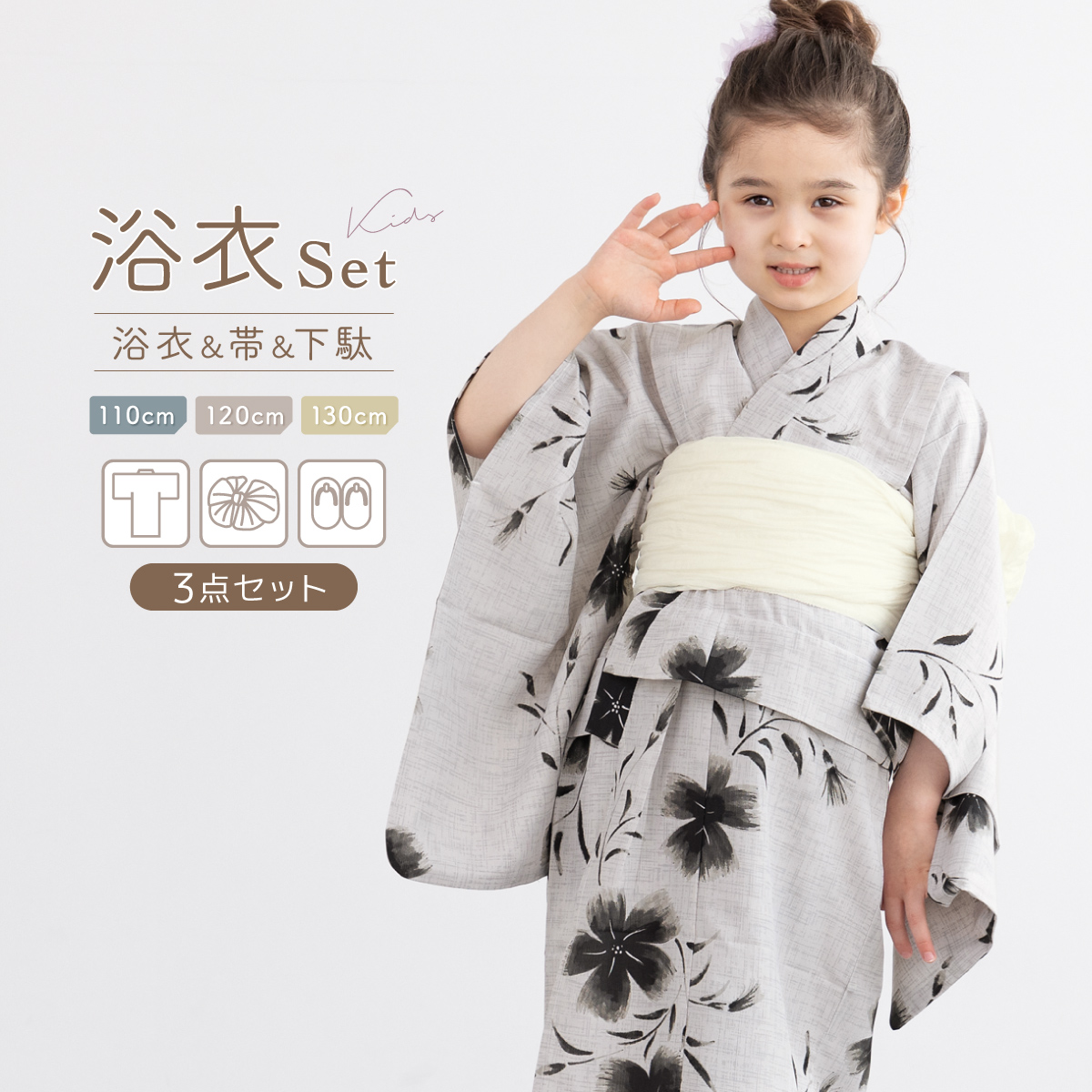 浴衣 女の子 浴衣セット キッズ 子供 兵児帯 3点セット モダン グレー 黒 白 撫子 花火 花 帯 下駄 夏 祭 110 120 130 送料無料 2026