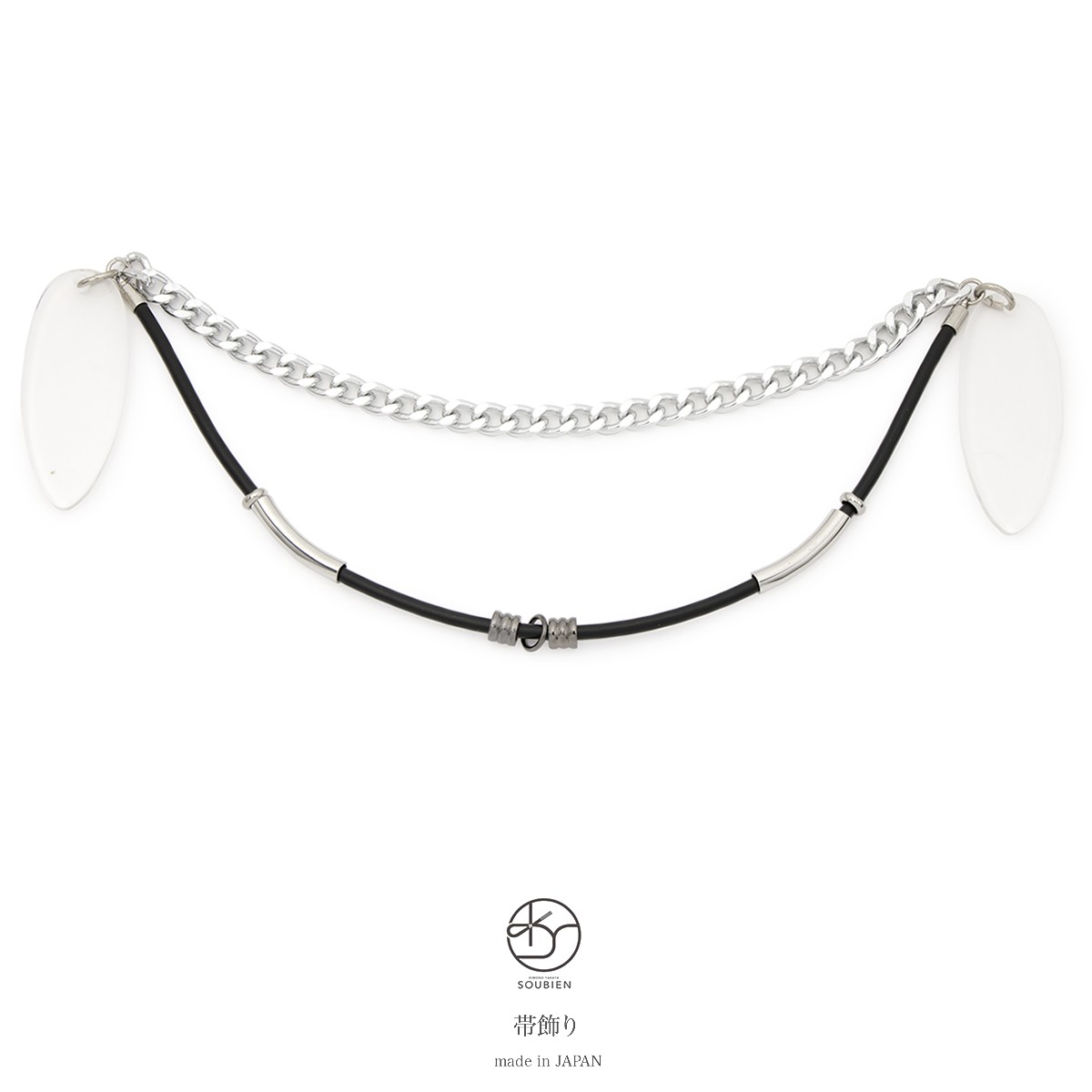 帯飾り 銀 シルバー 黒 ブラック ラバー チェーン 男女兼用 浴衣 カジュアル 着物 おびかざり 日本製