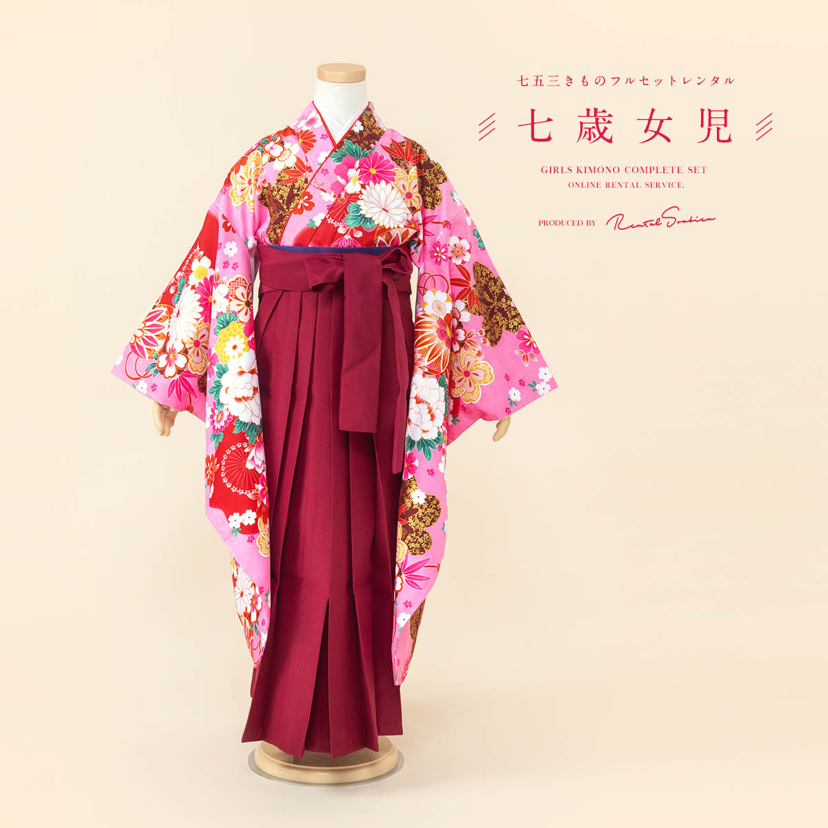卒園式 子供 袴 女の子 レンタル 七五三 7歳 着物 フルセット 袴セット ピンク 赤 花づくし 牡丹 桜 菊 梅 手鞠 ラメ 和服 創美苑