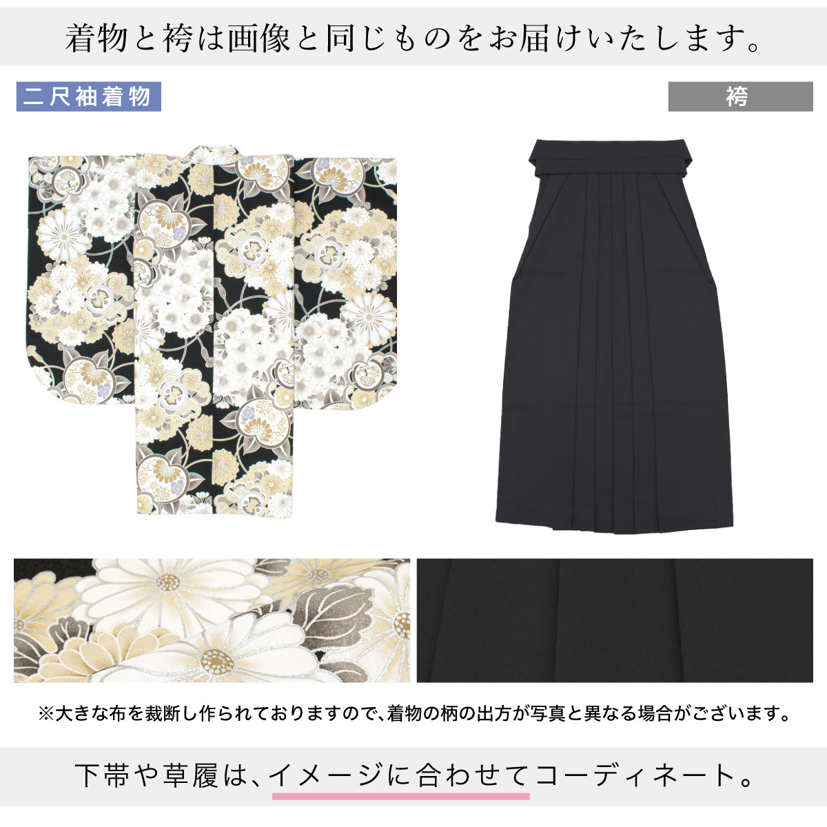 レンタル 卒業式 袴 女性 袴セット フルセット 大人 レディース 大学 和服 着物セット 着物 ブラック 黒 花束 橘 花柄 古典柄 箔柄 140 150 160 170 創美苑