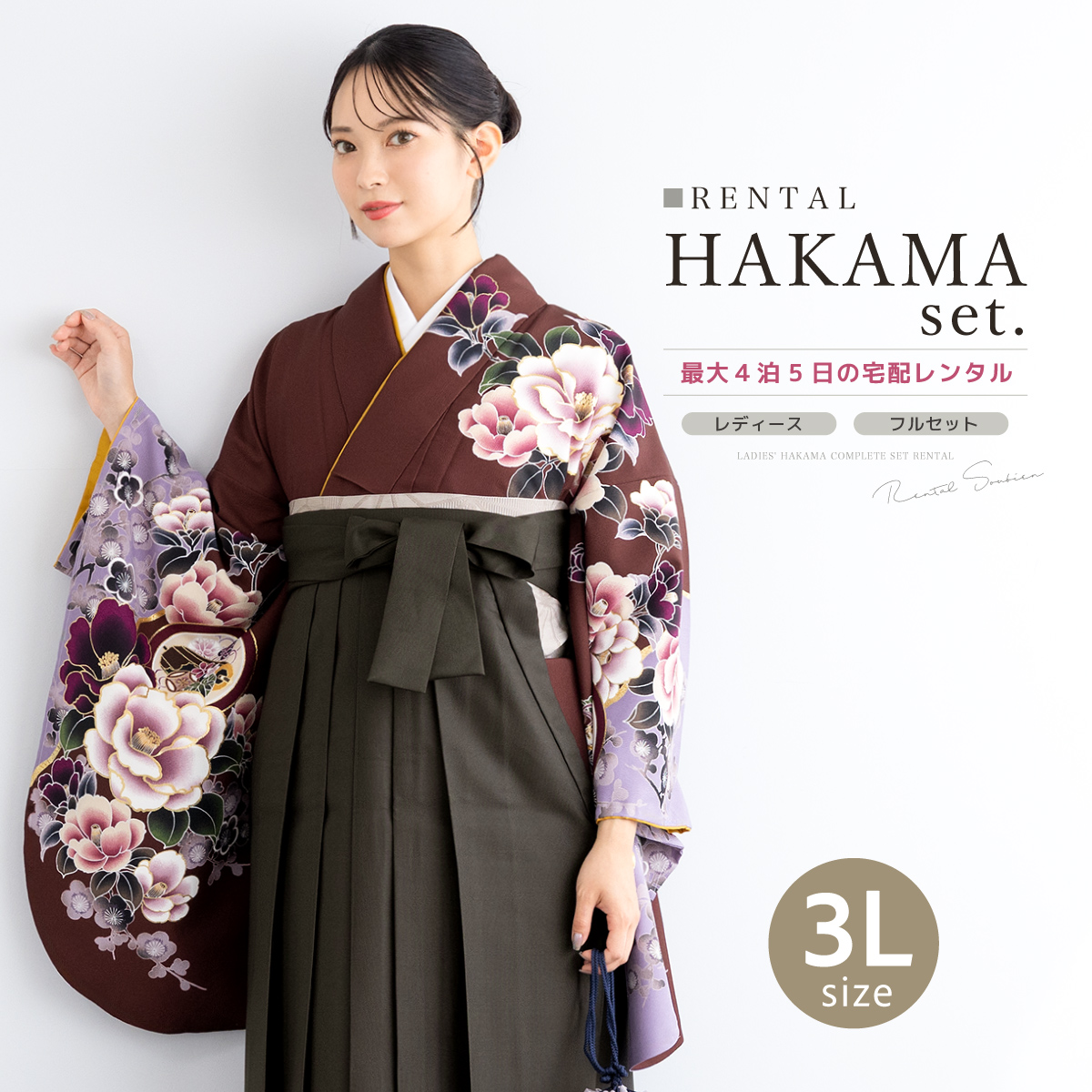 レンタル 卒業式 袴 女性 袴セット フルセット 大人 レディース 大学 着物セット 着物 赤 牡丹 花柄 襟付 大きいサイズ ワイドサイズ 140 150 160 170 創美苑
