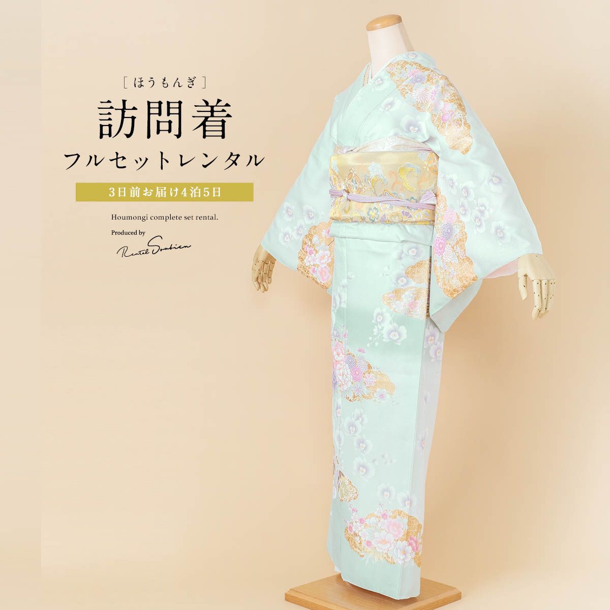 レンタル 訪問着 フルセット 七五三 卒業式 卒園式 入学式 入園式 母 ママ お茶会 緑 雲取り 牡丹 胡蝶蘭 訪問着セット 着物 袋帯 草履 バッグ 創美苑
