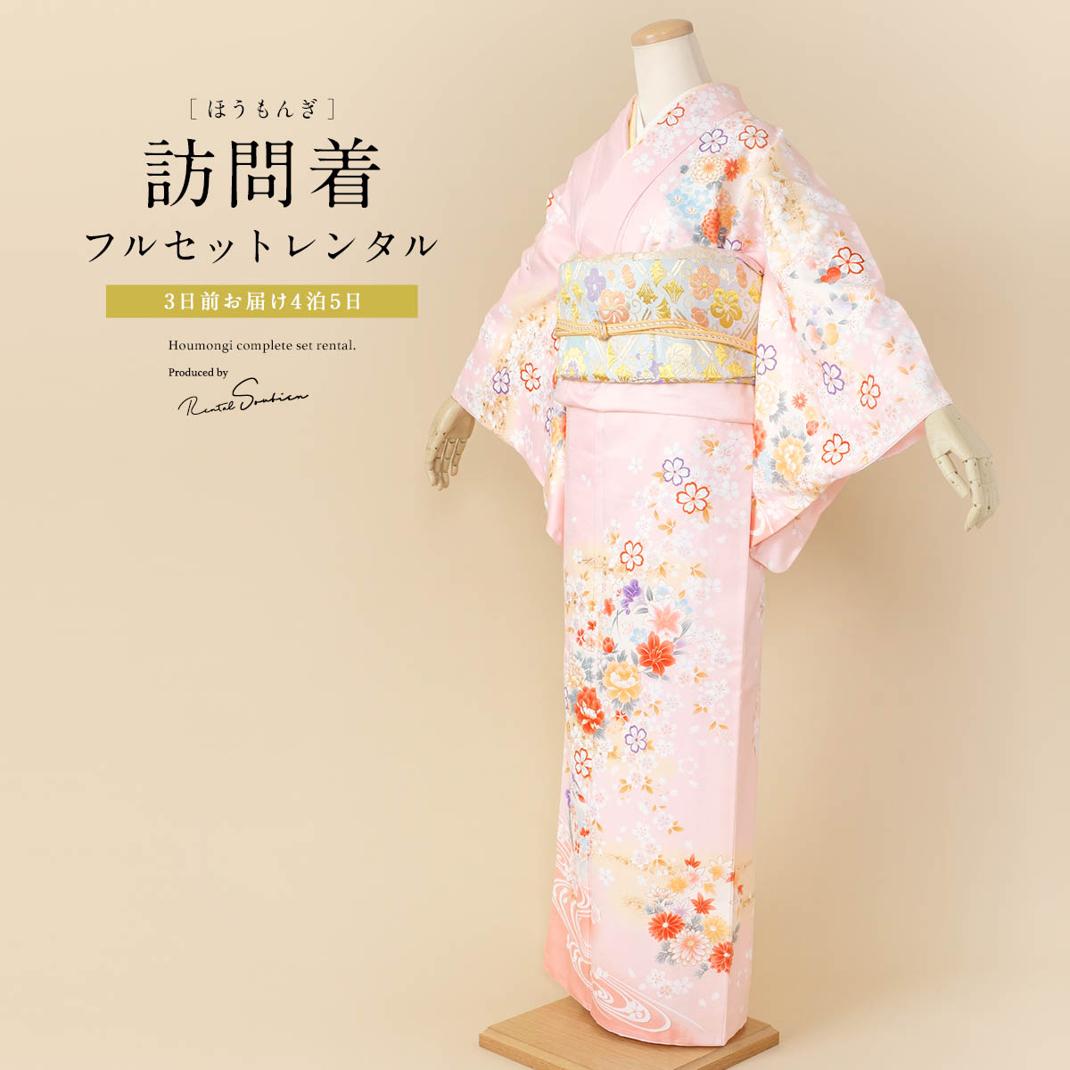 レンタル 訪問着 フルセット 七五三 卒業式 卒園式 入学式 入園式 母 ママ お茶会 ピンク 牡丹 花丸 流水 桜 訪問着セット 着物 袋帯 草履 バッグ 創美苑