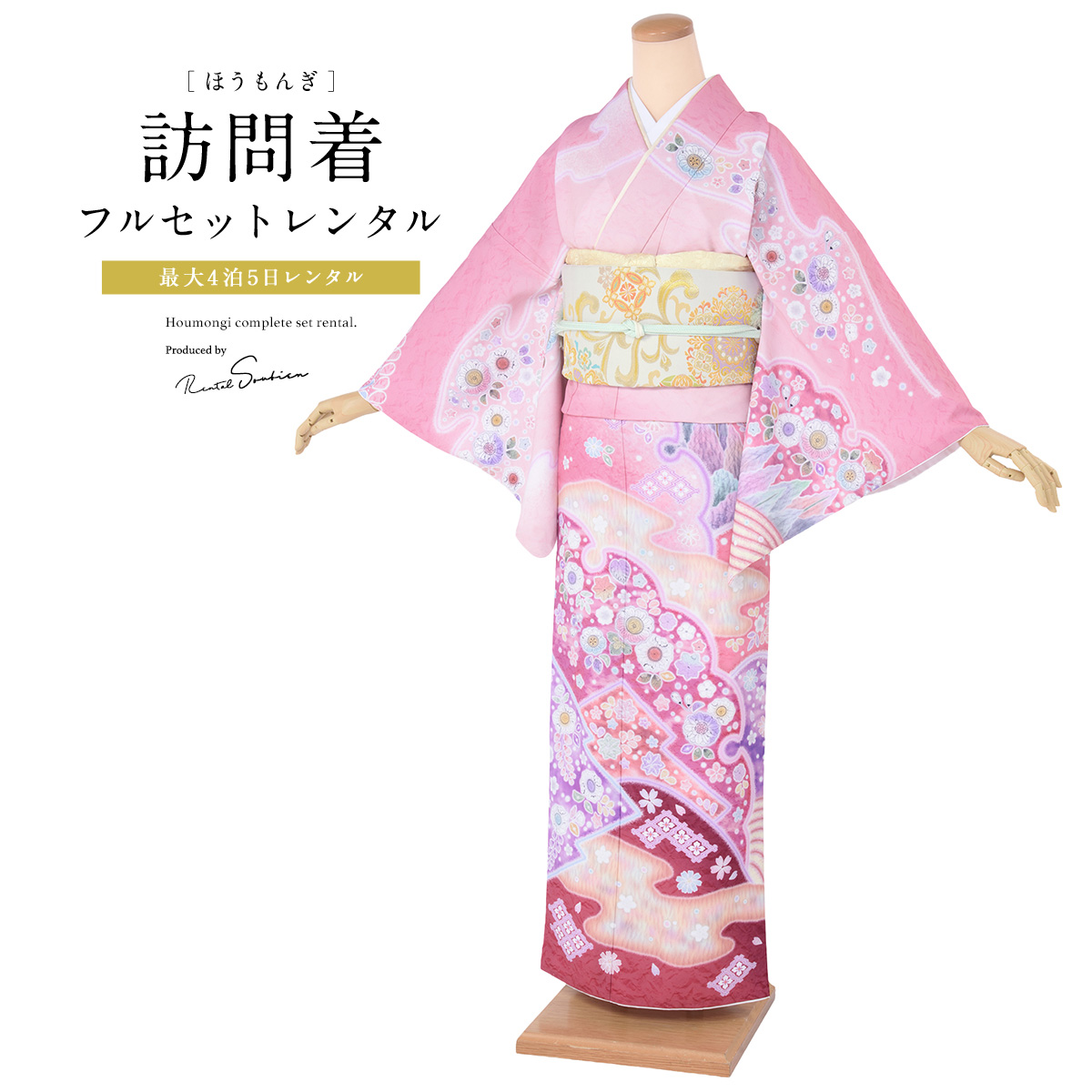 レンタル 訪問着 フルセット 七五三 卒業式 卒園式 入学式 入園式 母 ママ お茶会 ピンク グラデ 辻が花調 訪問着セット 着物 袋帯 草履 バッグ 創美苑