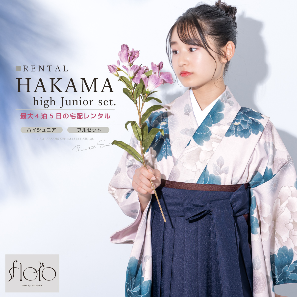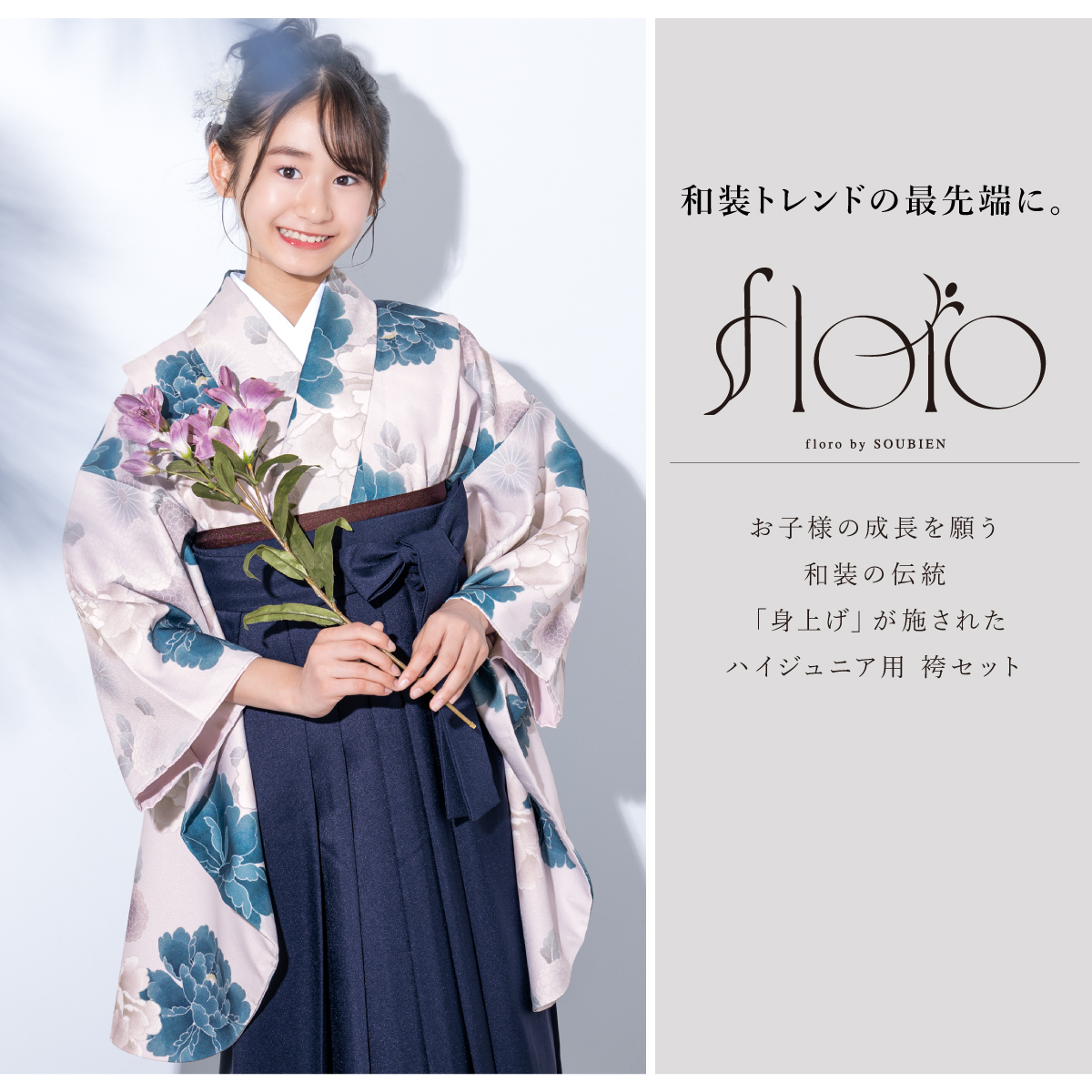 レンタル 袴 袴セット 卒業式 女の子 小学生 ジュニア 襦袢 草履 フルセット 和服 着物 モダン floro 花柄 ピンク 青 紺 140 150 160 創美苑