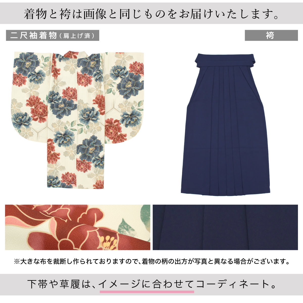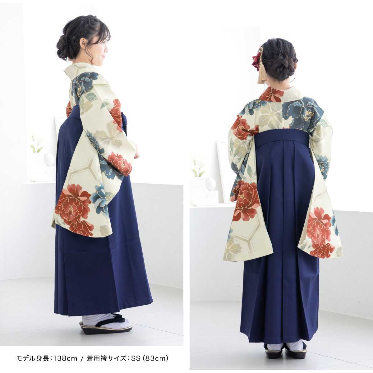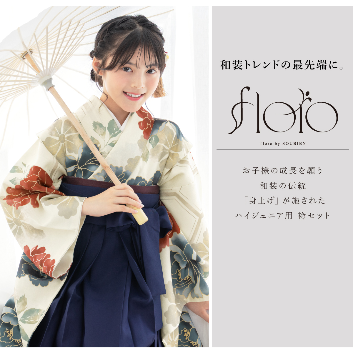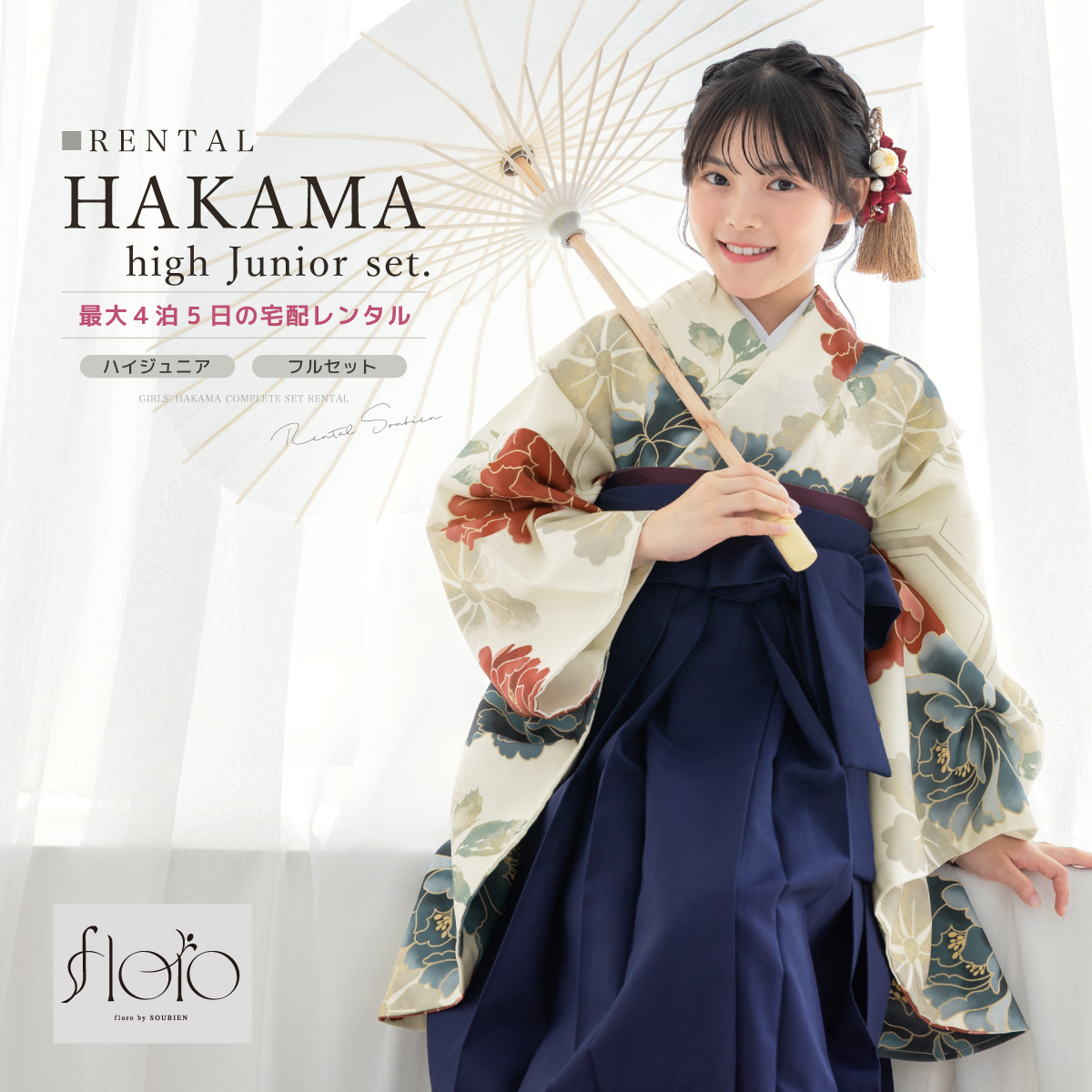 レンタル 袴 袴セット 卒業式 女の子 小学生 ジュニア 襦袢 草履 フルセット 和服 着物 floro ベージュ 紺 赤 花柄 モダン 大輪 SS S M L 140 150 160 創美苑