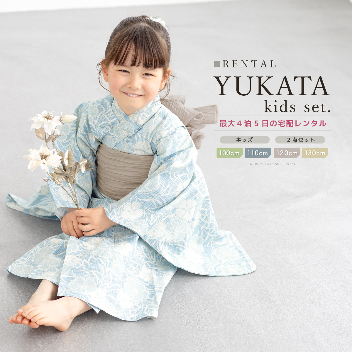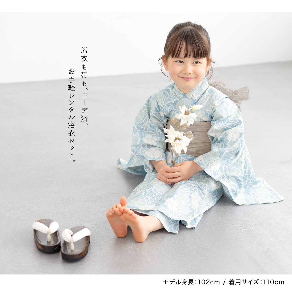 浴衣 子供 レンタル 女の子 浴衣セット 水色 ホワイト かわいい 簡単 涼しい キッズ 100 110 120 130 花柄 創美苑