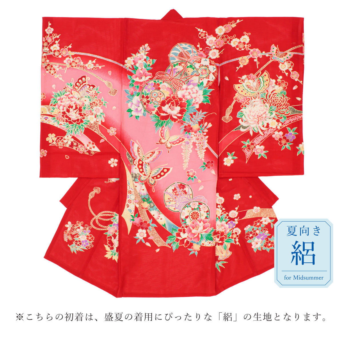 レンタル 産着 お宮参り 女の子 フルセット 赤 鼓 蝶 熨斗 牡丹 菊 梅 絽 夏向け 掛け着 うぶぎ 祝着 子供着物 赤ちゃん 祝い着 帽子セット