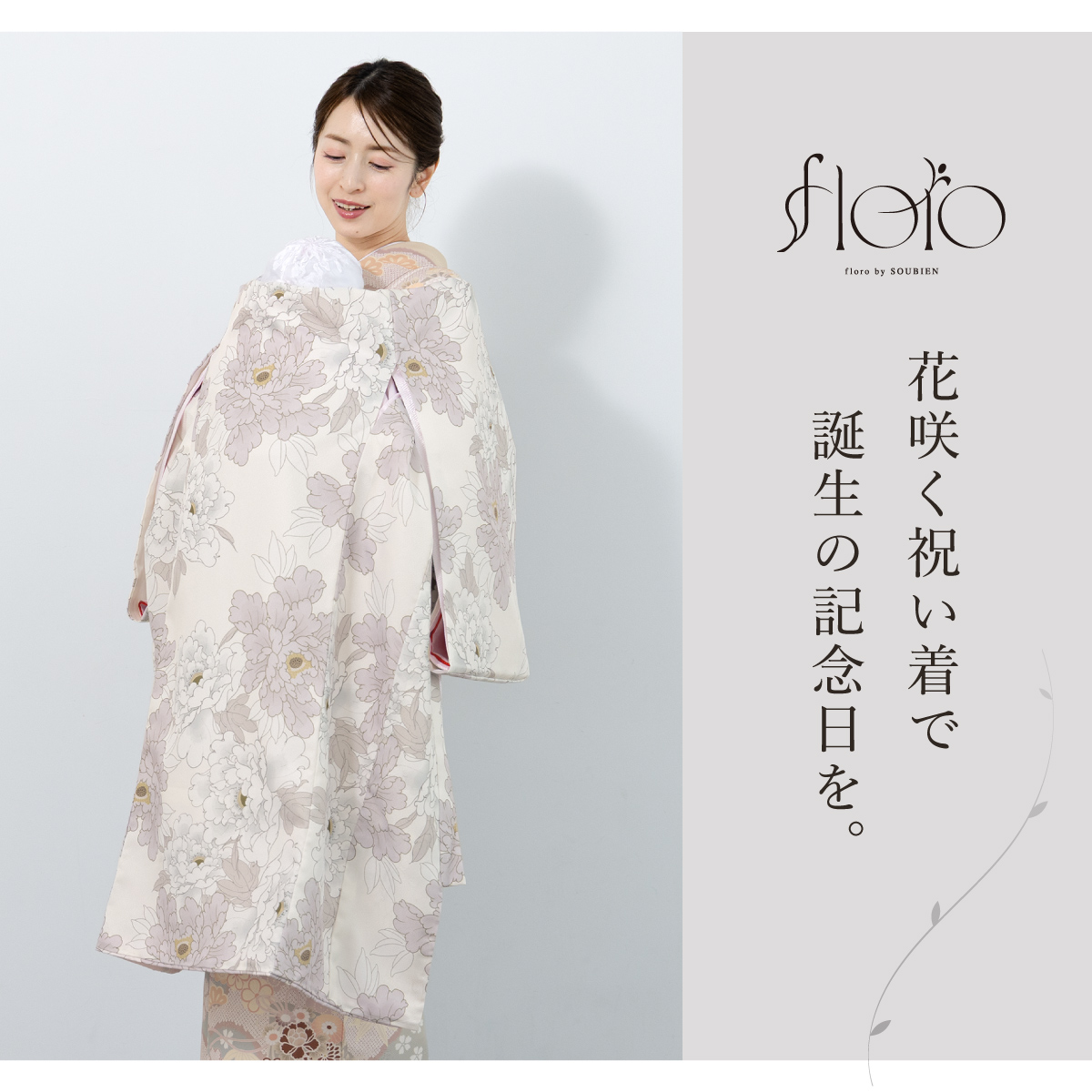 レンタル 産着 お宮参り 女の子 フルセット floro 白 菊 花柄 掛け着 産着セット うぶぎ 祝着 子供着物 赤ちゃん 祝い着 帽子セット よだれかけ 創美苑