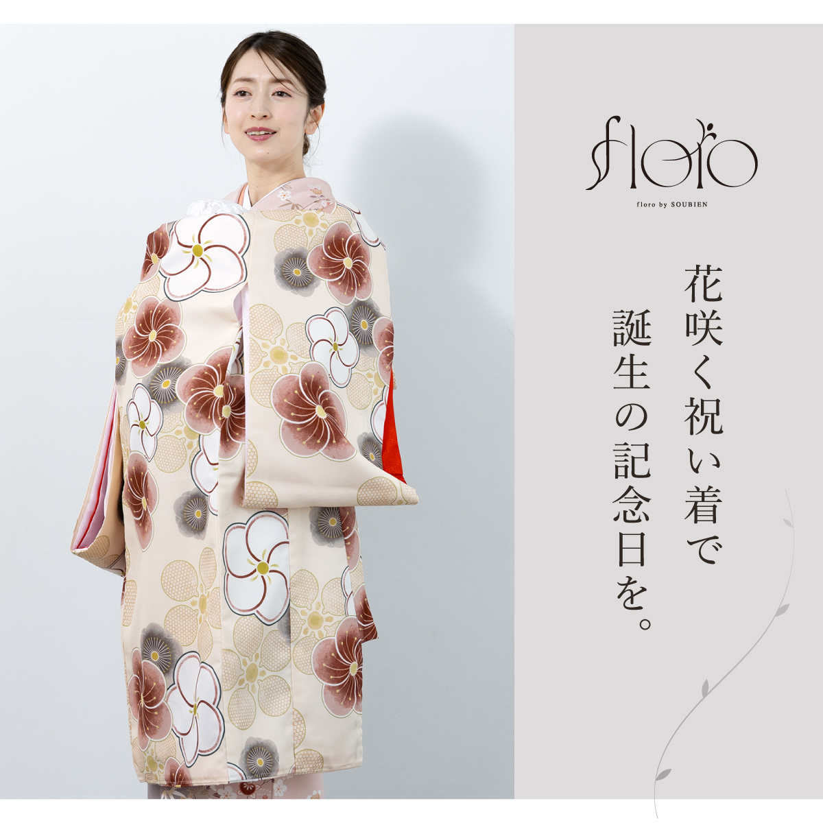 レンタル 産着 お宮参り 女の子 フルセット floro クリーム 赤 梅 掛け着 産着セット うぶぎ 祝着 子供着物 赤ちゃん 祝い着 帽子セット よだれかけ 創美苑