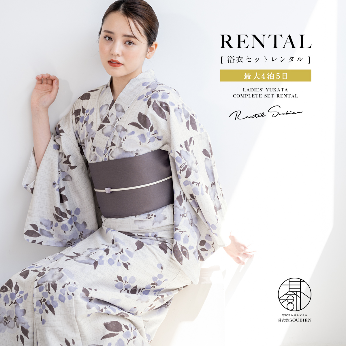 浴衣 セット レンタル レディース 浴衣セット 大人 簡単 涼しい グレー 紫 桜 花 半幅帯 創美苑