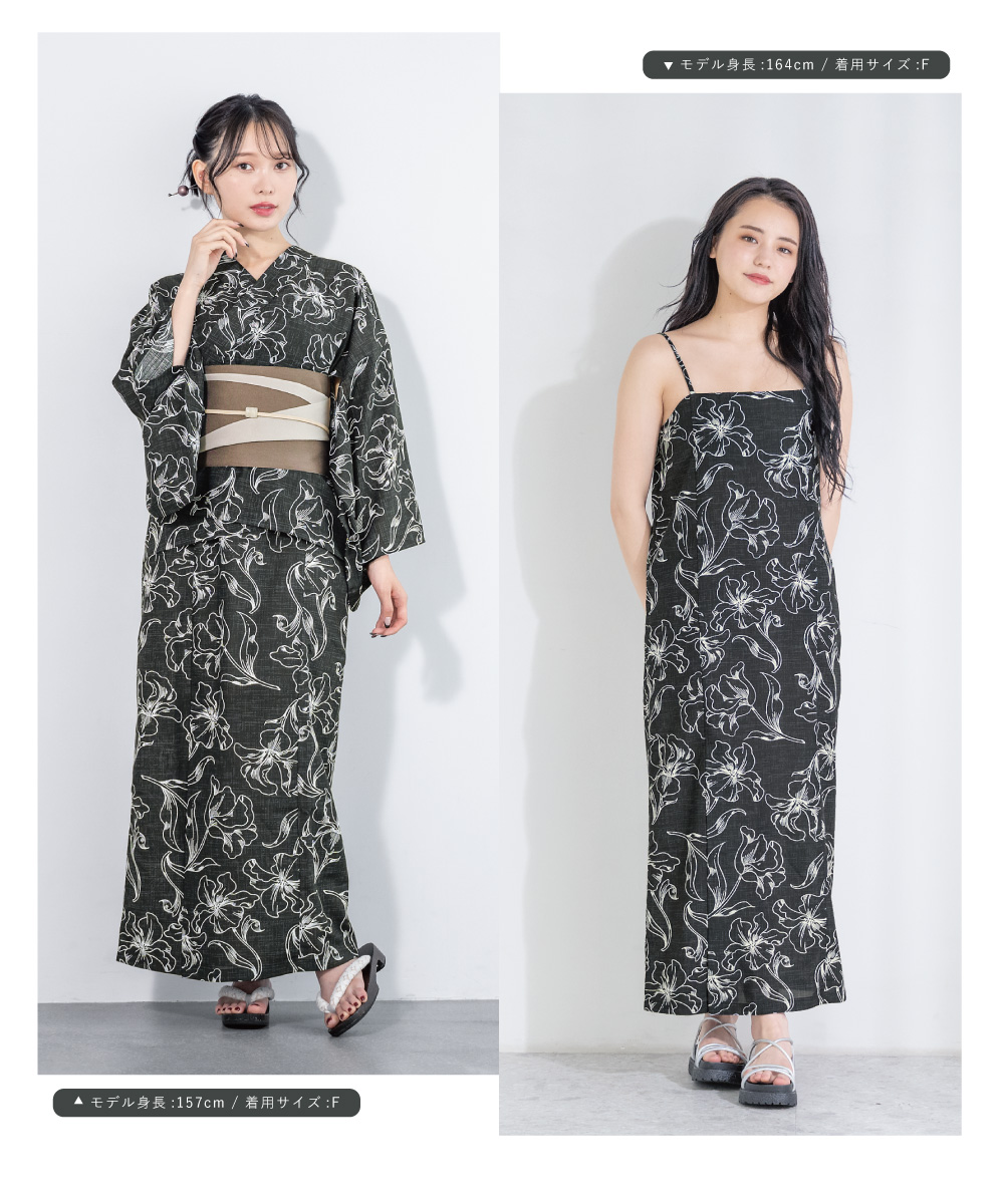 浴衣 セット セパレート 二部式 レンタル レディース 浴衣セット 大人 夏 簡単 涼しい 黒 アイリス 花柄 半幅帯 創美苑
