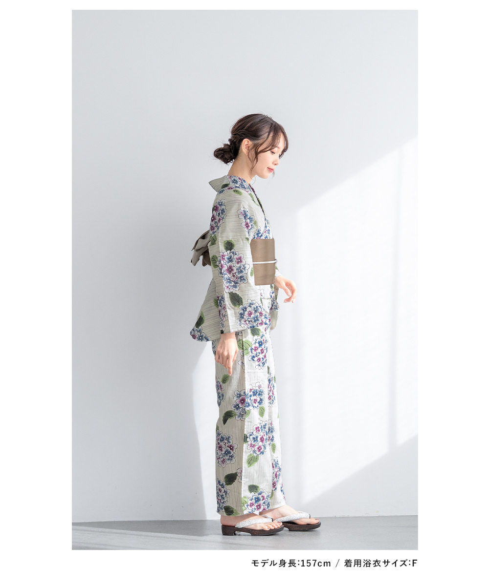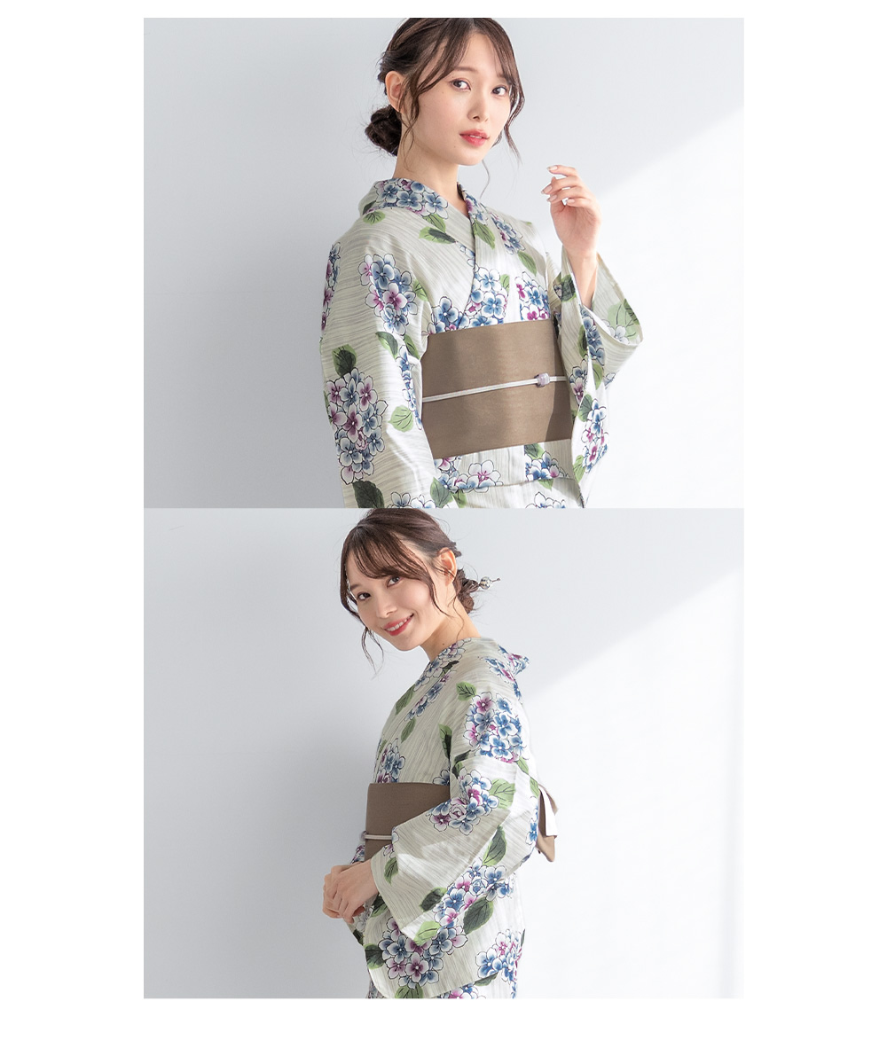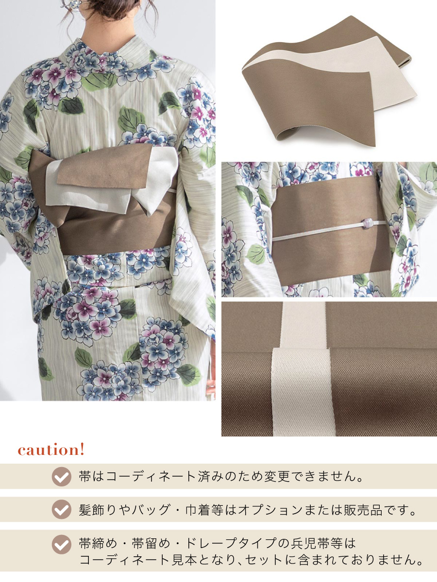 浴衣 セット レンタル レディース 浴衣セット 大人 簡単 涼しい クリーム 薄紫 青 紫陽花 雨縞 グレージュ 半幅帯 創美苑