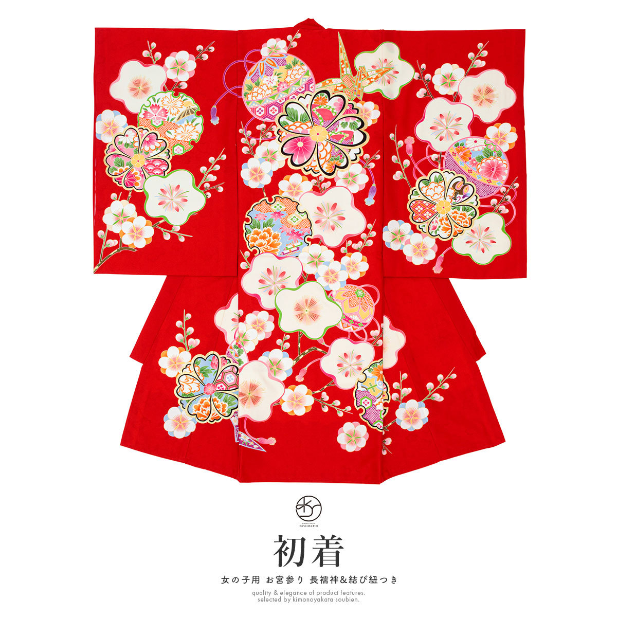 産着 女 女の子 販売 初着 赤 レッド 梅 雪輪 手鞠 掛け着 うぶぎ 祝着 お宮参り ポリエステル お祝い 赤ちゃん