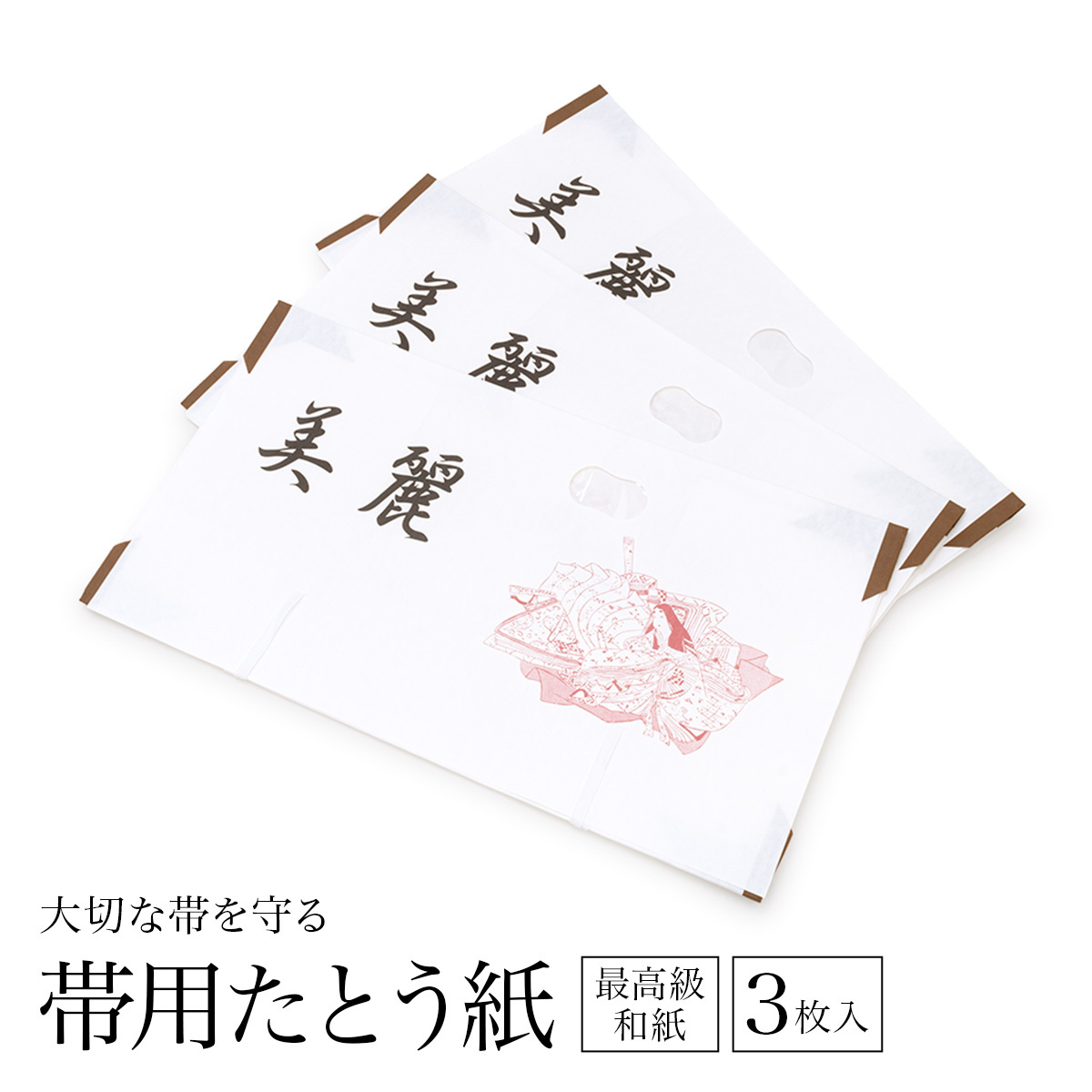 たとうし 帯 和紙 たとう紙 3枚セット 帯用 白 ホワイト 美麗 衣装包み 和装小物 保管 文庫紙 紐 窓 保存 畳紙
