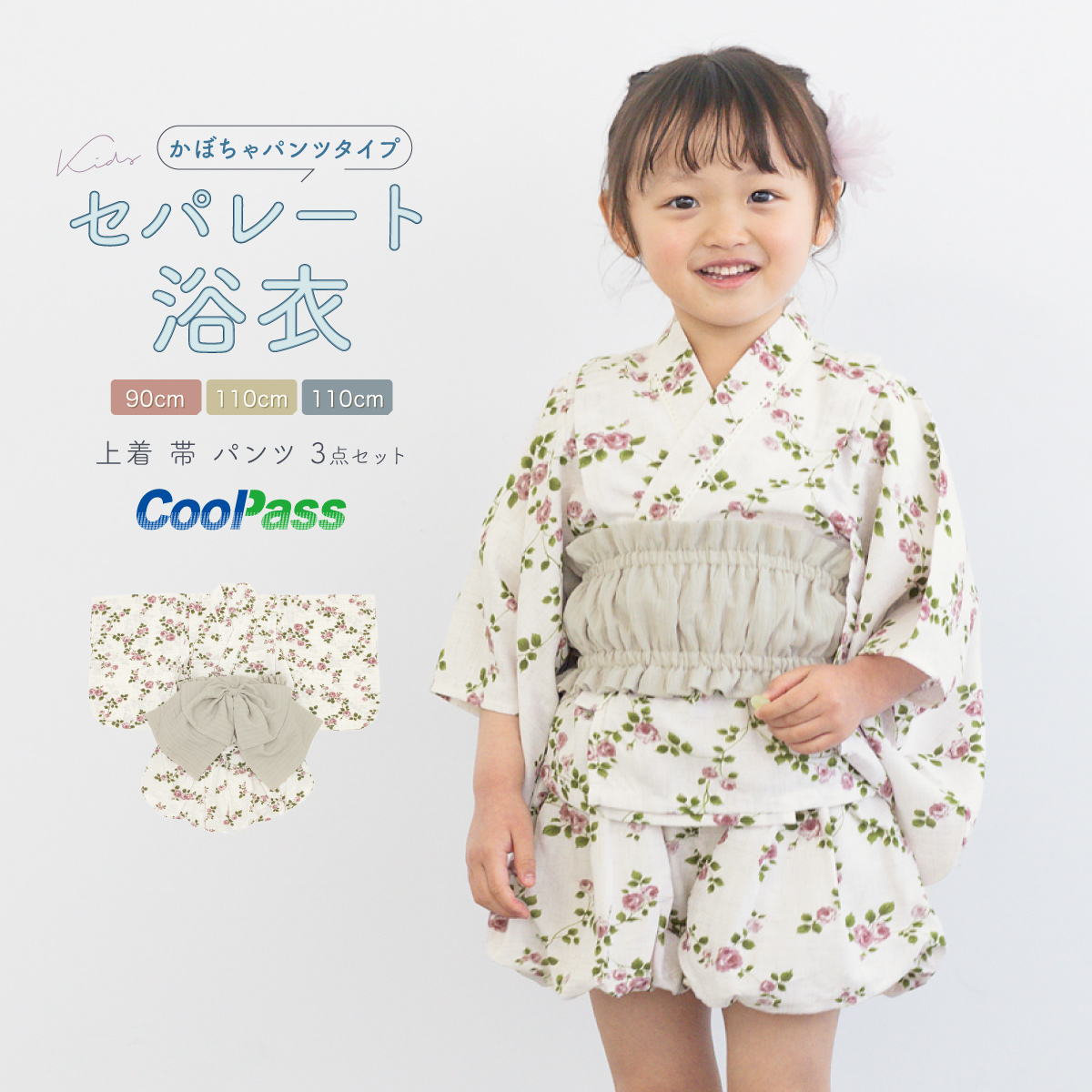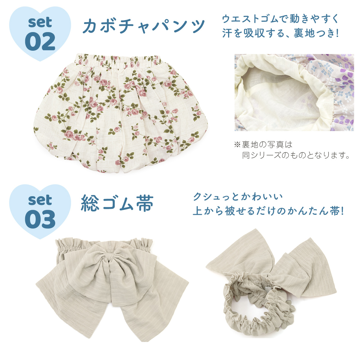 浴衣 子供 セパレート 女の子 ベビー 浴衣セット かぼちゃパンツ 帯 3点セット SOUBIEN 吸水速乾 90 100 110 送料無料 2025新作