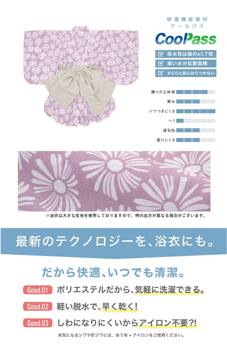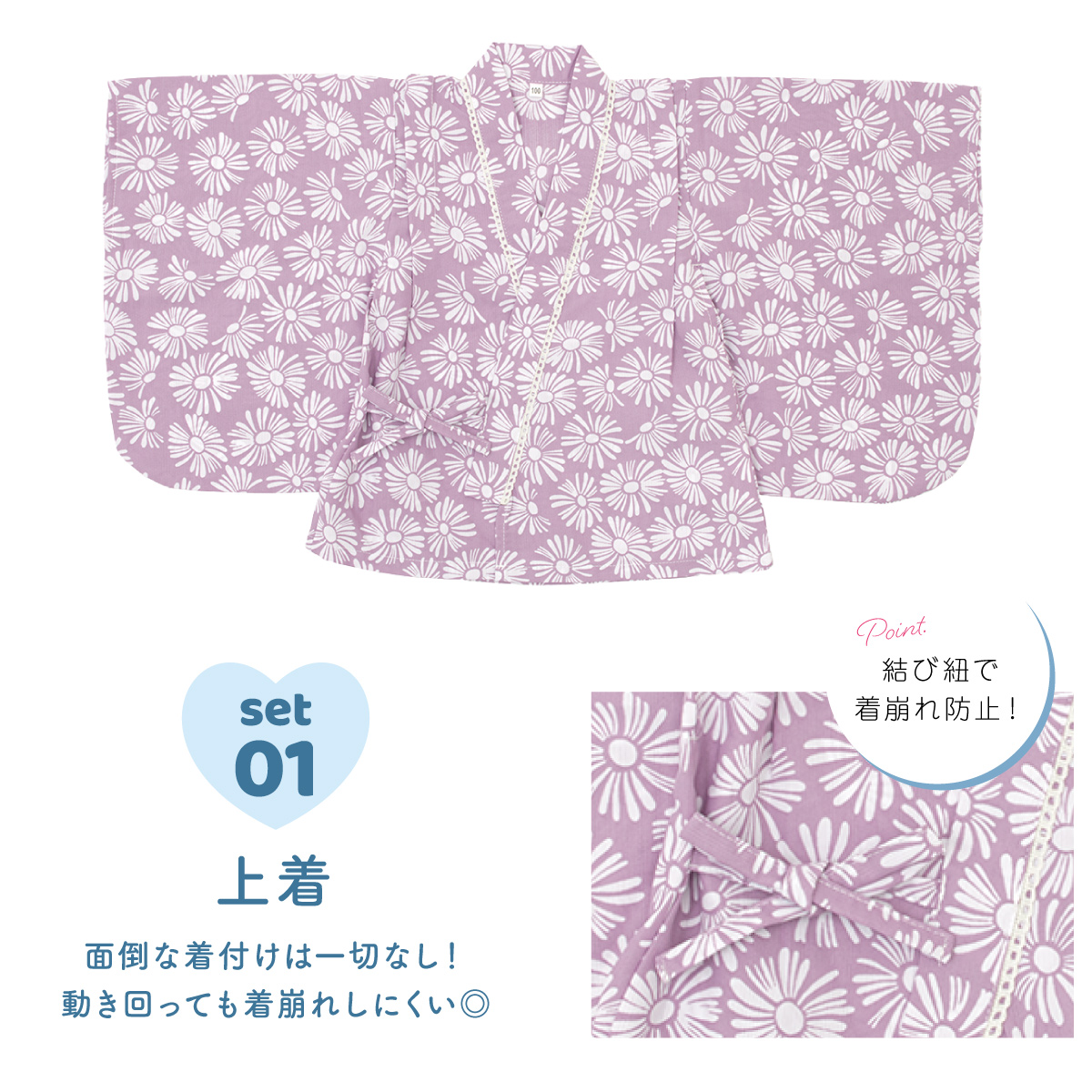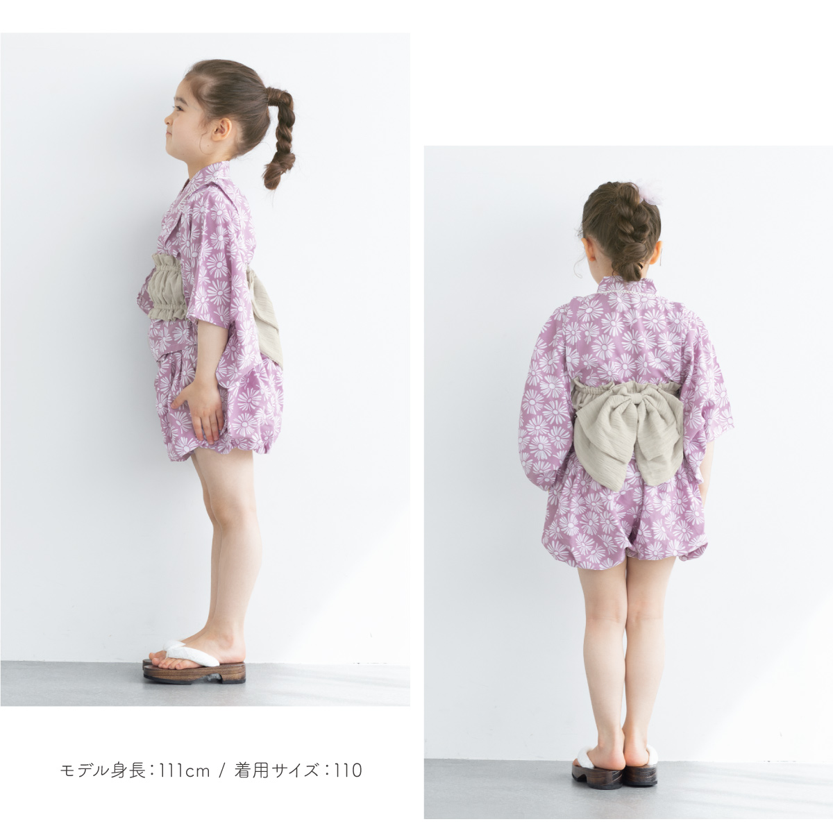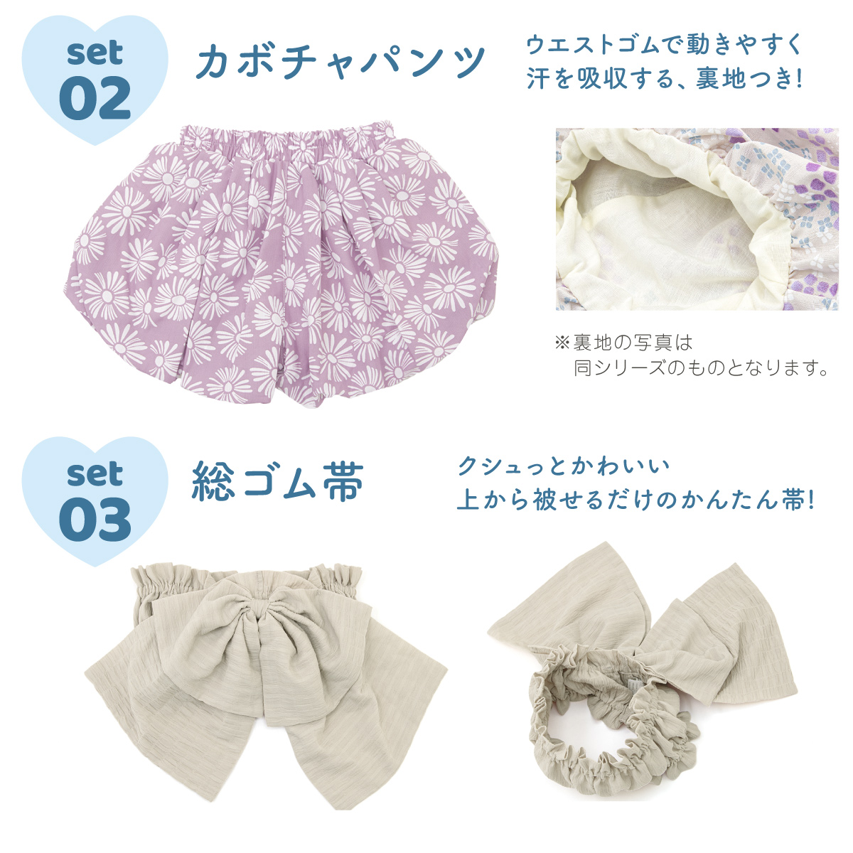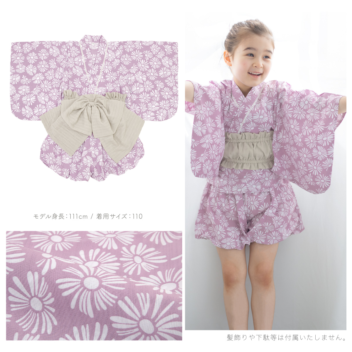 浴衣 子供 セパレート 女の子 ベビー 浴衣セット かぼちゃパンツ 帯 3点セット SOUBIEN 吸水速乾 赤紫 亜麻色 マーガレット 90 100 110 送料無料 2025新作
