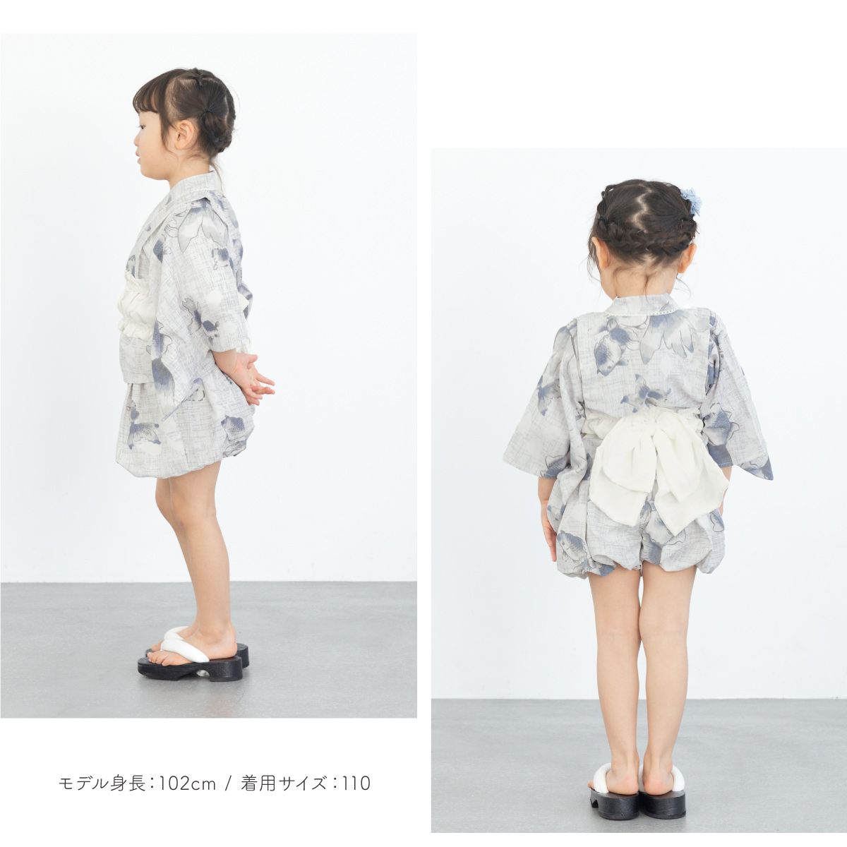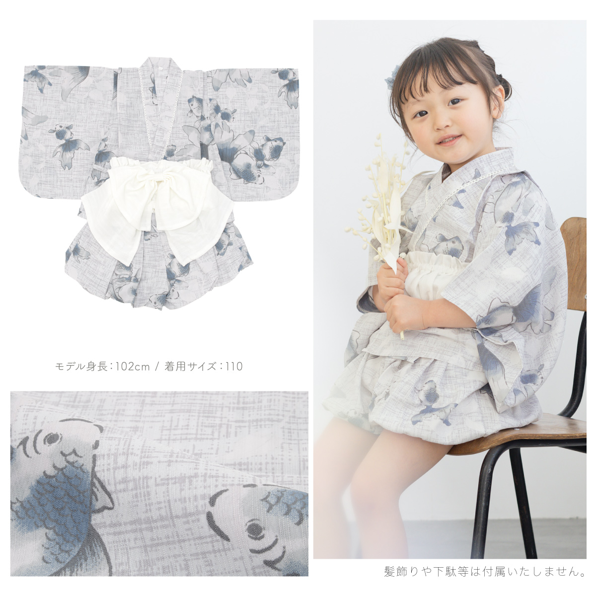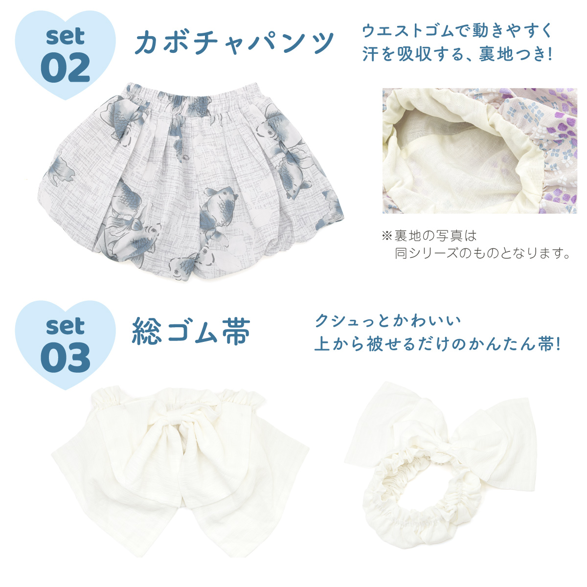 浴衣 子供 セパレート 女の子 ベビー 浴衣セット かぼちゃパンツ 帯 3点セット SOUBIEN 吸水速乾 青 グレー 白 金魚 90 100 110 送料無料 2025新作