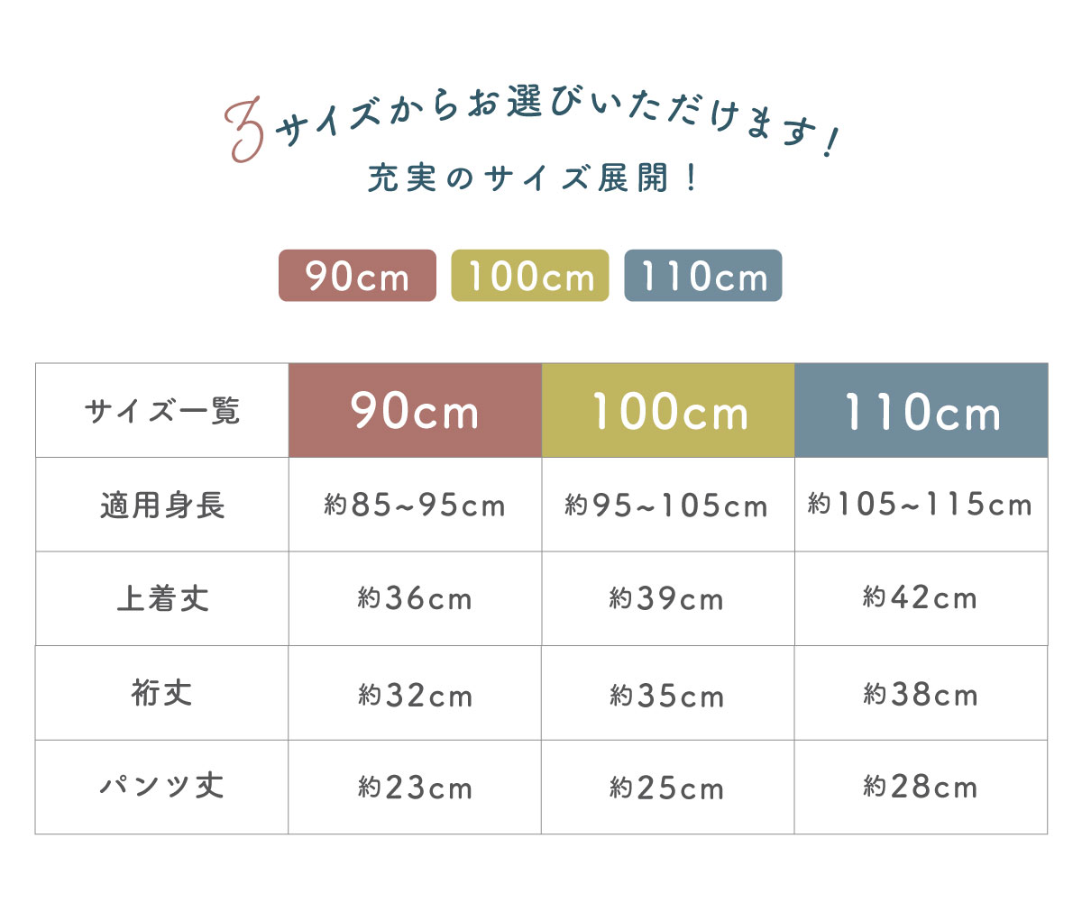 ■サイズ表// 上着丈 / 裄丈 / パンツ丈