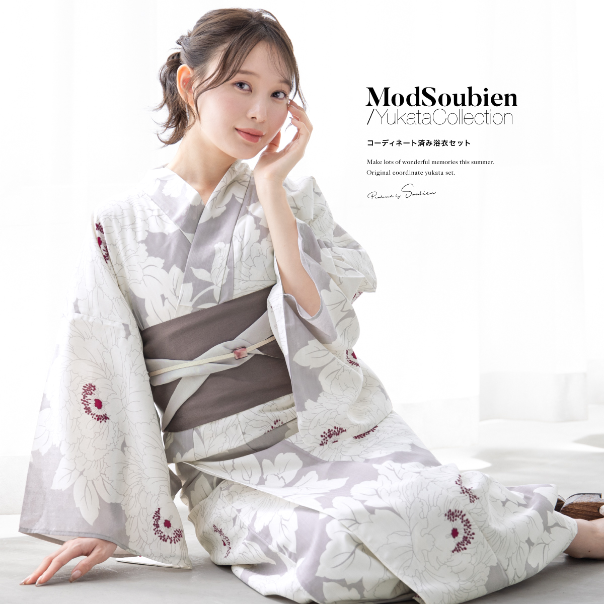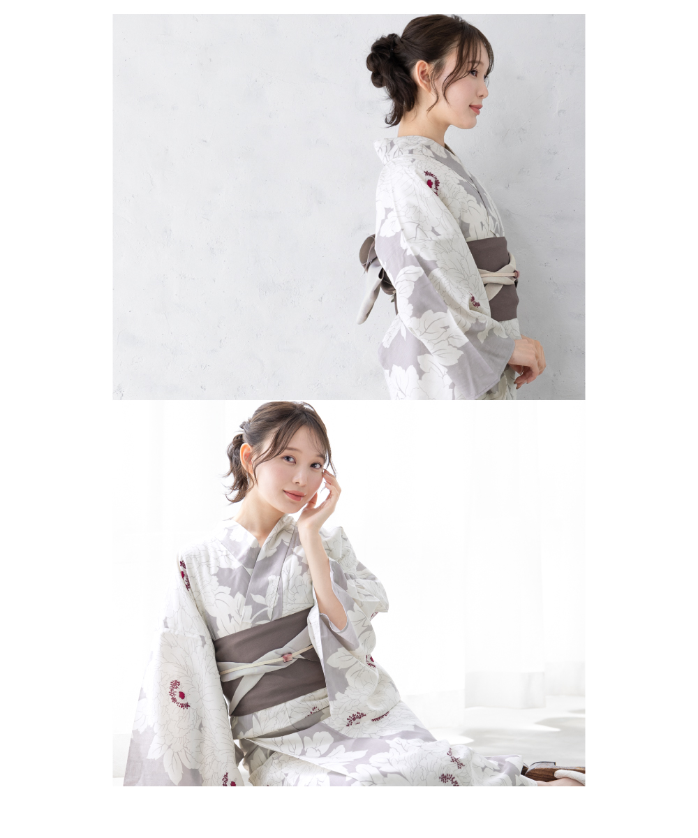 浴衣 レディース 浴衣セット 夏 大人 F 半幅帯 3点 グレー 白 花 レディース浴衣 女性 ゆかた ユカタ yukata モダン レトロ 創美苑