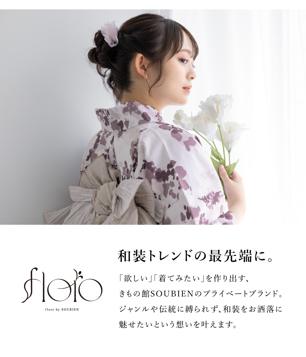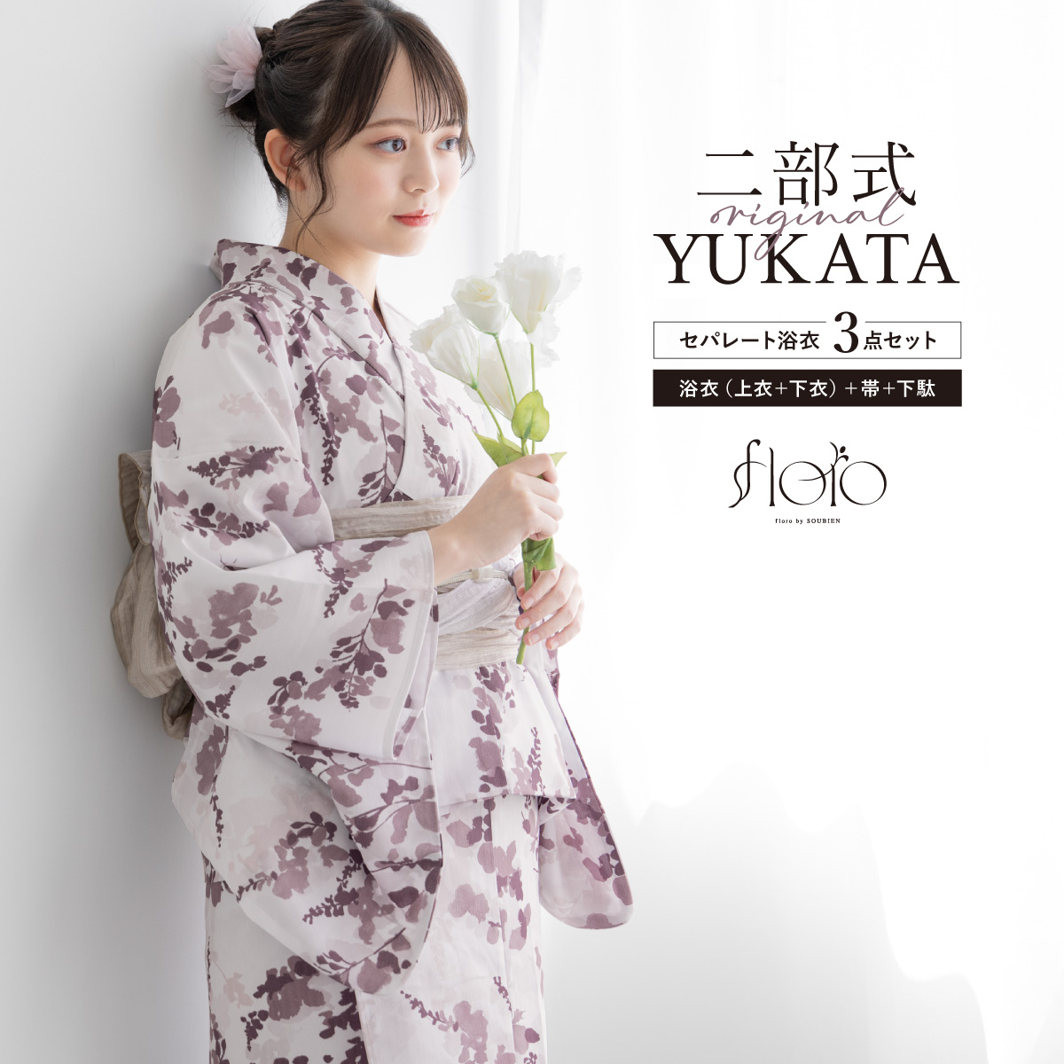 浴衣 レディース セパレート浴衣 二部式浴衣 浴衣セット 夏 大人 F floro 兵児帯 下駄 紫 ピンク ベージュ 花柄 女性 ゆかた ユカタ yukata モダン 創美苑
