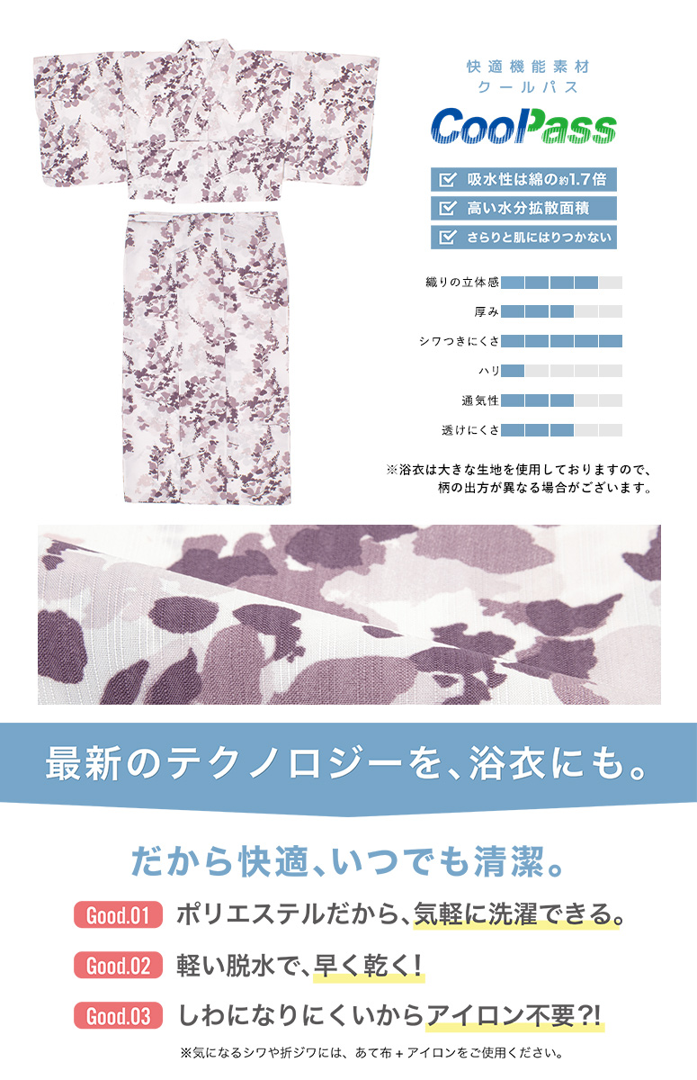 ※二部式浴衣(上衣・下衣)・帯・下駄の3点セットです。セット内容の一部変更や、それに伴う値引きは承っておりません。