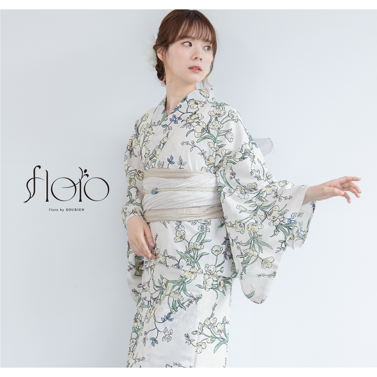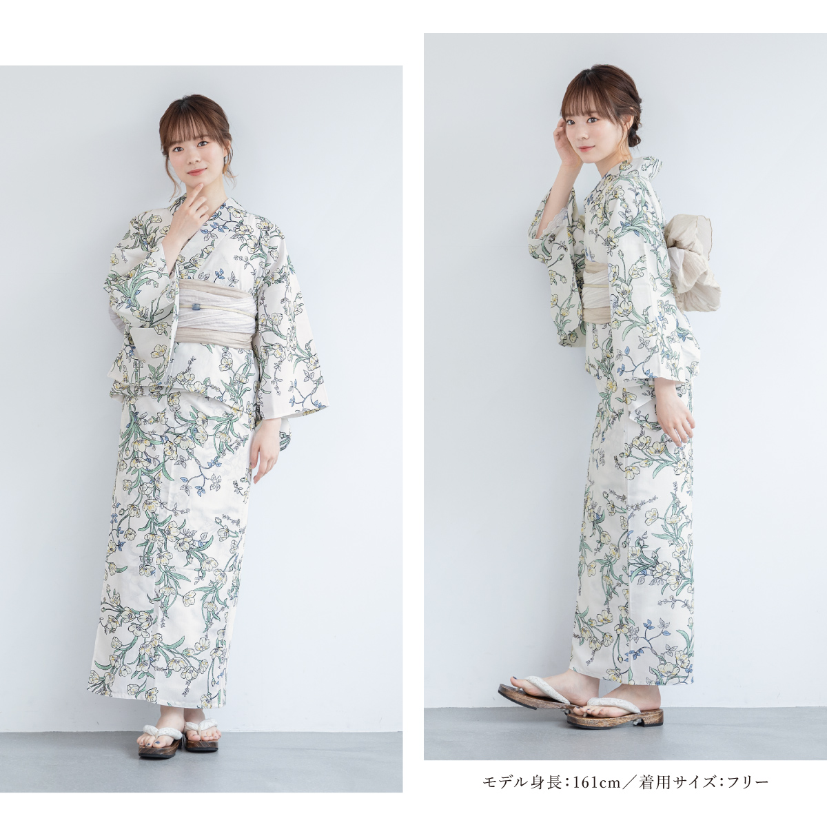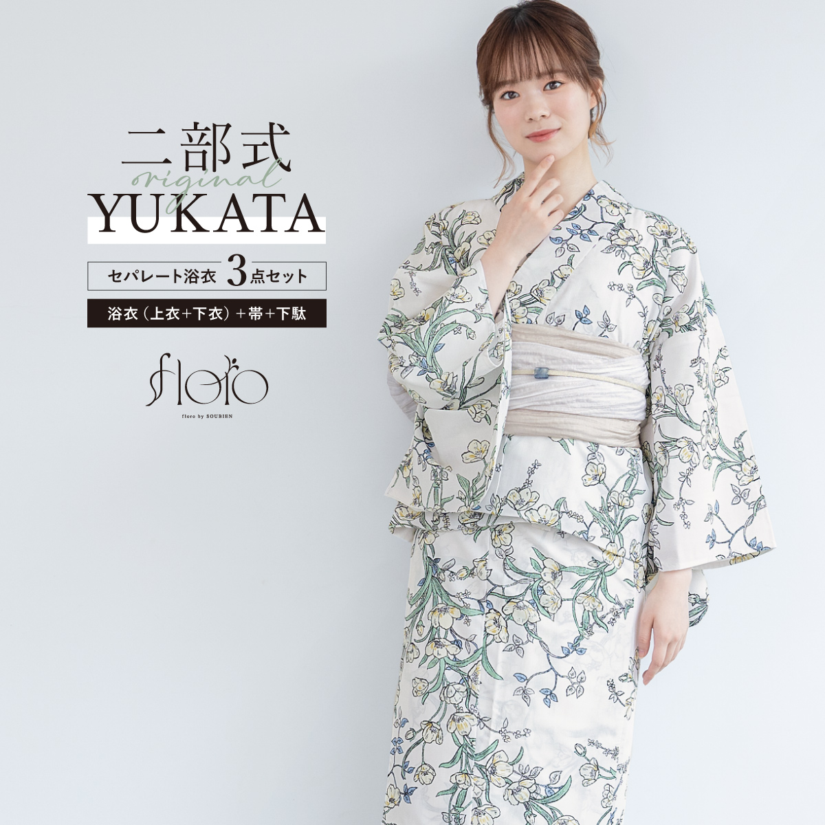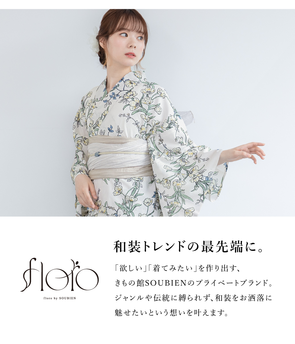 浴衣 レディース セパレート浴衣 二部式浴衣 浴衣セット 夏 大人 F floro 兵児帯 下駄 白 緑 黄色 ベージュ 花柄 女性 ゆかた ユカタ yukata モダン 創美苑