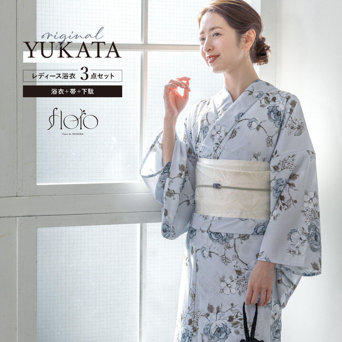 ※こちらは浴衣・帯・下駄の3点セットです。セット内容の一部変更や、それに伴う値引きは承っておりません。