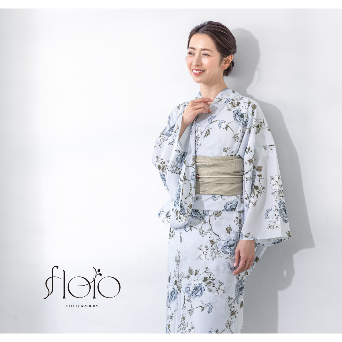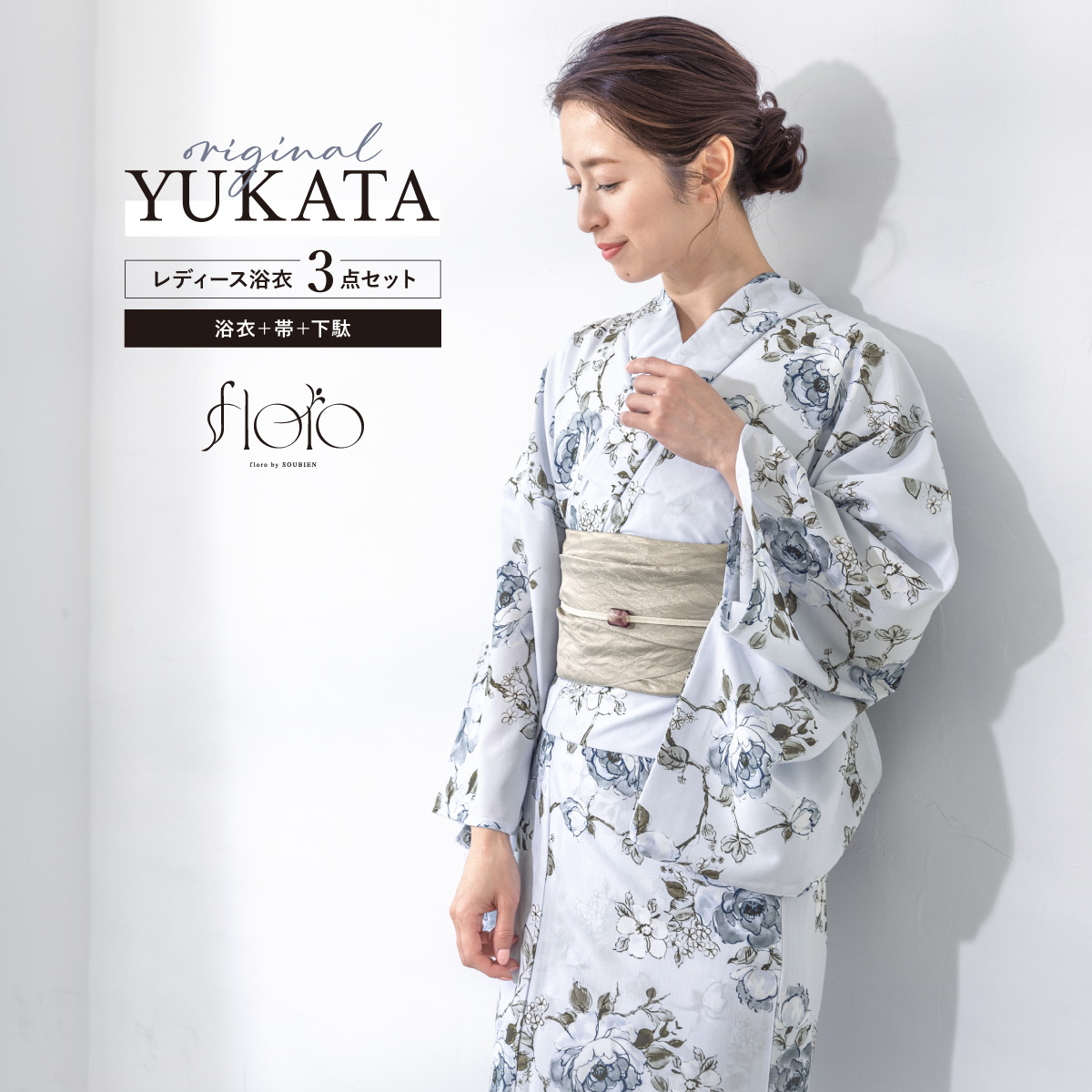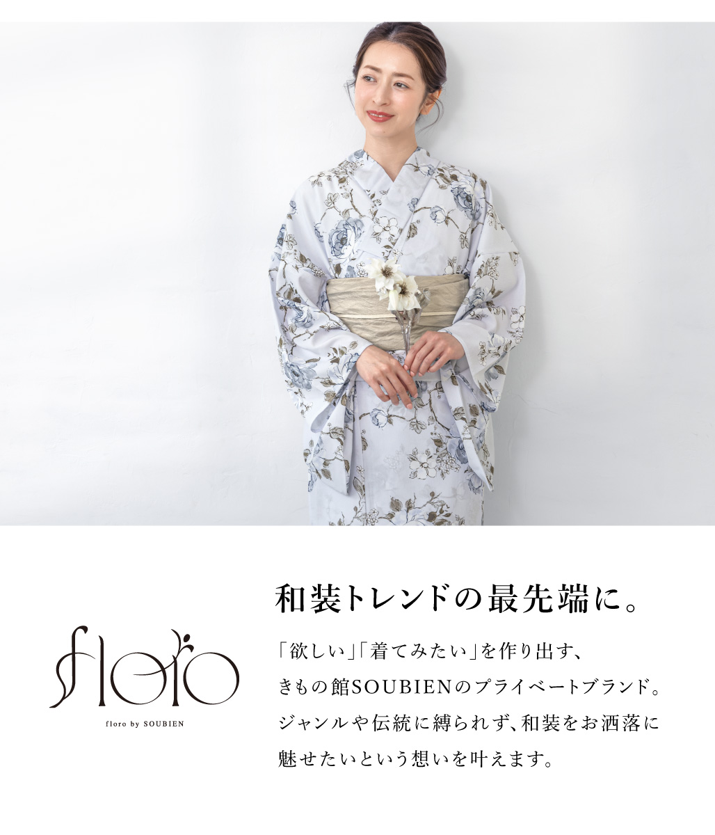 浴衣 レディース 浴衣セット 夏 大人 F 兵児帯 floro 水色 ベージュ 花柄 下駄 レディース浴衣 女性 ゆかた ユカタ yukata モダン レトロ 創美苑