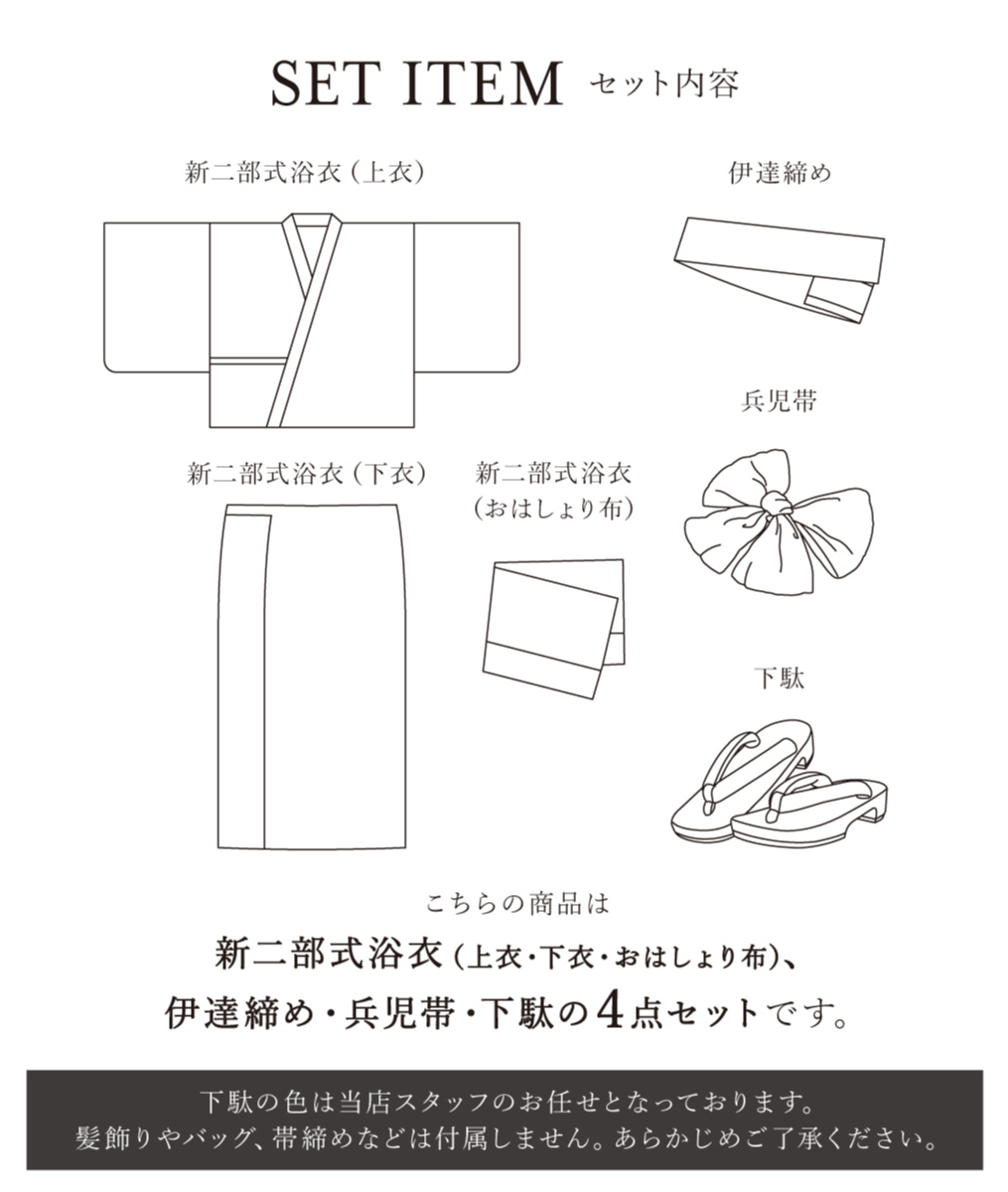 二部式浴衣・帯・伊達締め・下駄