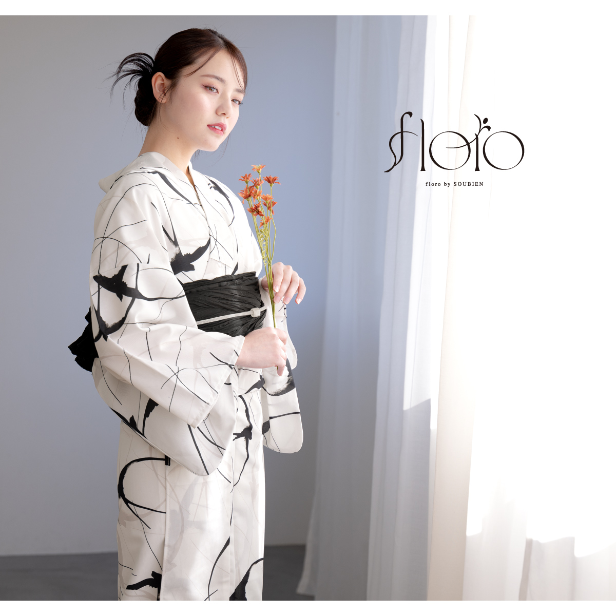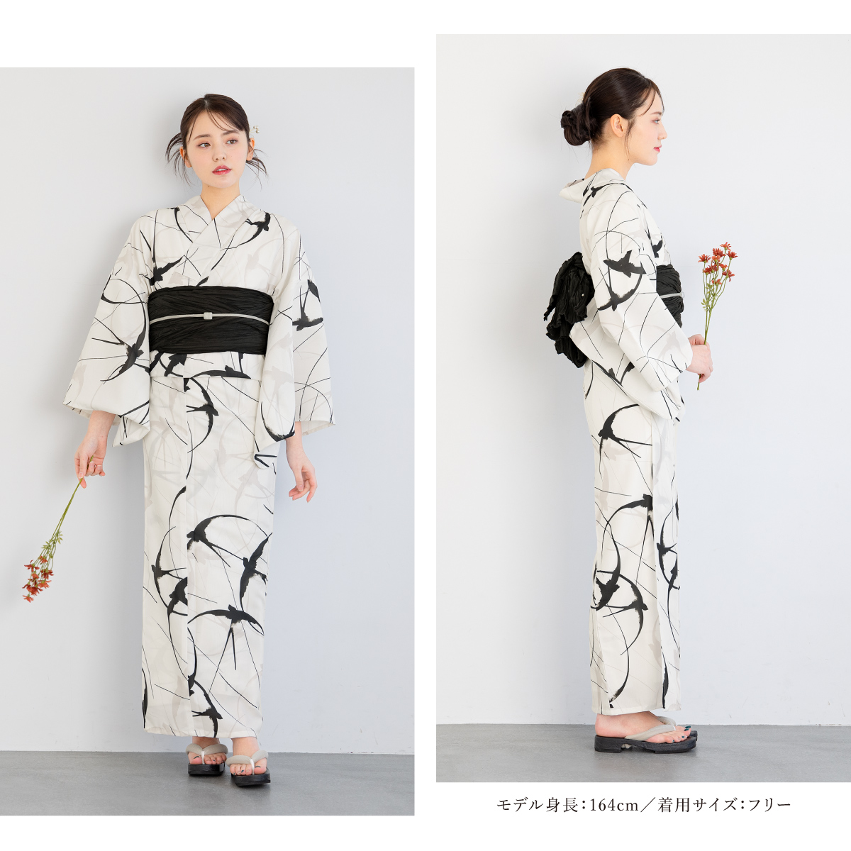 浴衣 セット レディース 浴衣セット 大人 F 帯 夏 2点 兵児帯 floro 黒 白 燕 下駄 女性 ゆかた ユカタ yukata モダン レトロ 創美苑