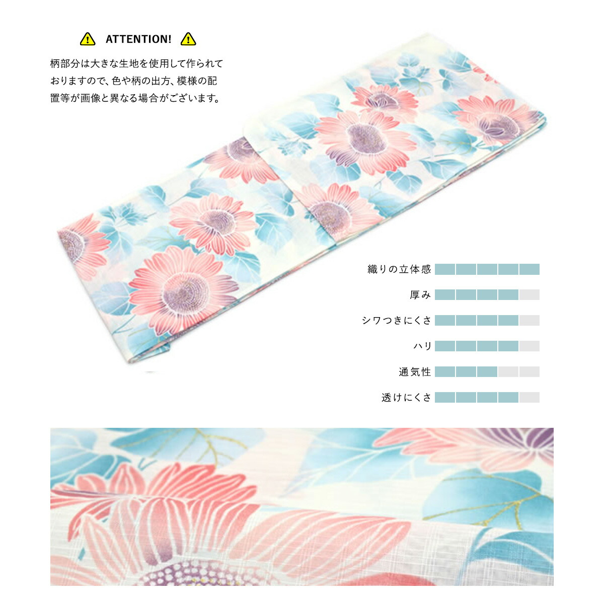 浴衣 セット レディース 浴衣セット 兵児帯 大人 3点セット 水色 ブルー ピンク 白 向日葵 花 ラメ フリー ボヌールセゾン 送料無料