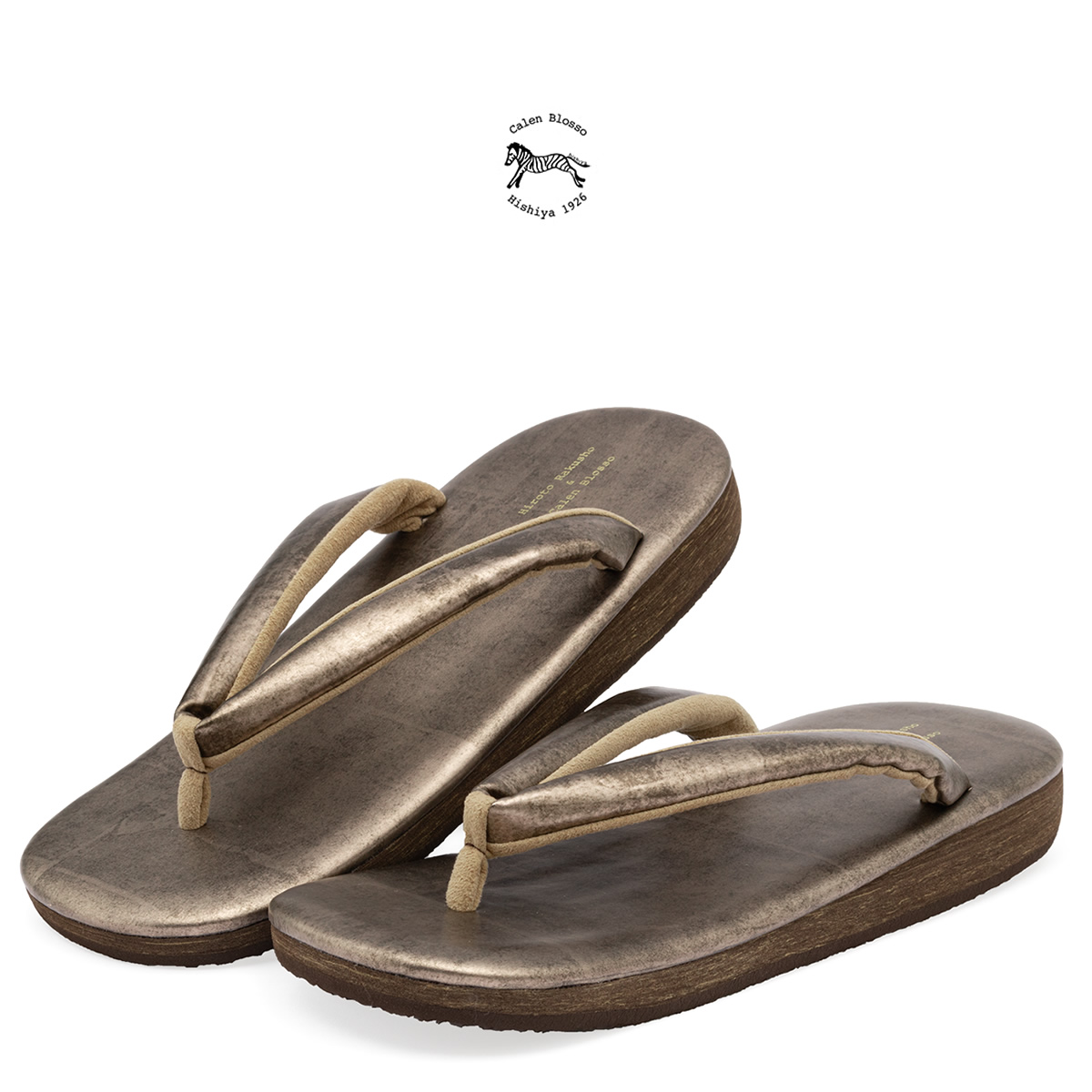 雪駄 メンズ おしゃれ 日本製 革 カレンブロッソ 男性用 ビブラムソール カジュアル ゴールド せった 送料無料