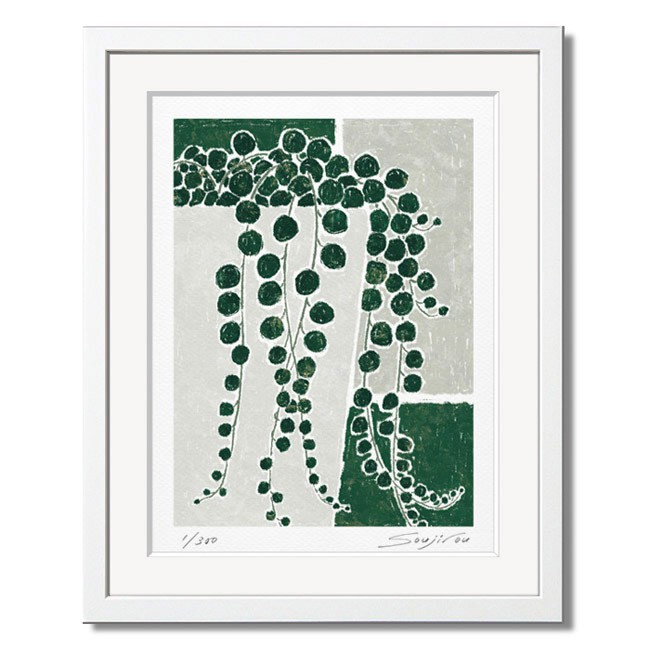 絵画 アート インテリア 壁掛け 版画 おしゃれ ギフト 額入り 小さい絵 観葉植物/絵画 グリーンネックレス/藤谷壮仁郎 Soujirou Art